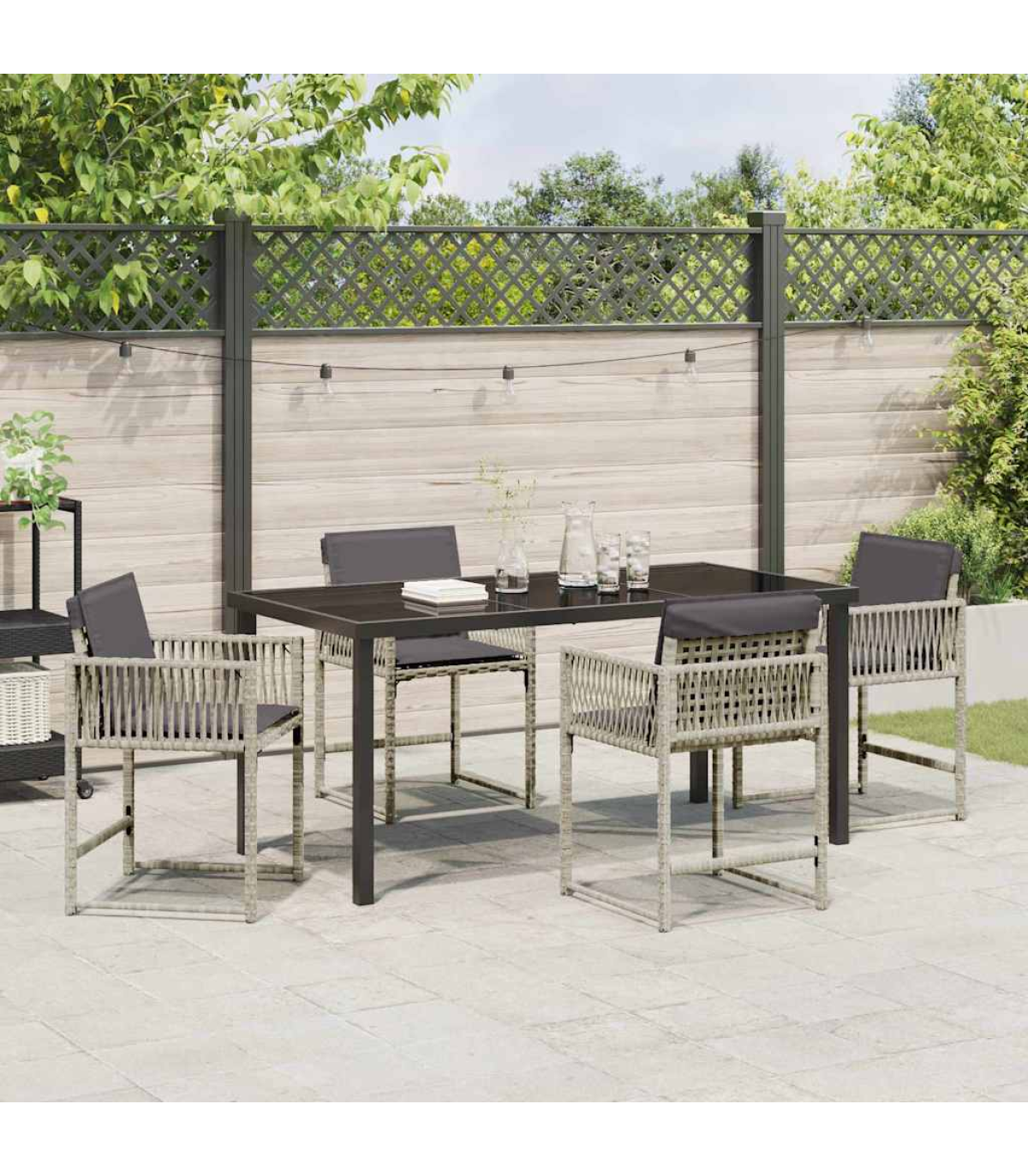 This modern garden dining set is the perfect blend of sleek design and practicality, making it a brilliant addition to any outdoor space for summer hangouts. Built for both good looks and lasting durability, this set is ideal for those who appreciate a bit of simplicity and elegance in their garden furniture. Whether you're throwing a garden party or just enjoying a meal outside, this dining set's just right for a comfy and stylish vibe. Material Composition: Made from a strong combo of poly rattan and steel, this garden set looks good and is tough. The poly rattan gives it a lovely woven finish, while the steel frame adds stability, so it won’t blow away in the wind. This smart choice of materials is both nice to look at and practical. Included Components: The dining set comes with comfy poly rattan chairs, all finished nicely so they look good from every angle in your garden. The glass-topped table gives you a smooth, striking surface that's a breeze to clean. Plus, the comfy armrests and sturdy legs make dining all the more enjoyable. Design & Features: The modern style features clean lines and minimal fuss, making it a classy choice for any garden or terrace. Built solely for outdoor use, the materials are chosen to last, ensuring it’ll stay in good shape over time. Recommended Use: This dining set is a great fit for gardens or terraces, setting the scene perfectly for casual meals or family get-togethers. Its flexibility works well for both small dinners and big celebrations, making the most of your outdoor moments. Care Instructions: To keep it looking its best, throw a cover over it when you're not using it. Since it’s outdoor gear, some simple care will help it stay pristine for years of fun in your garden.