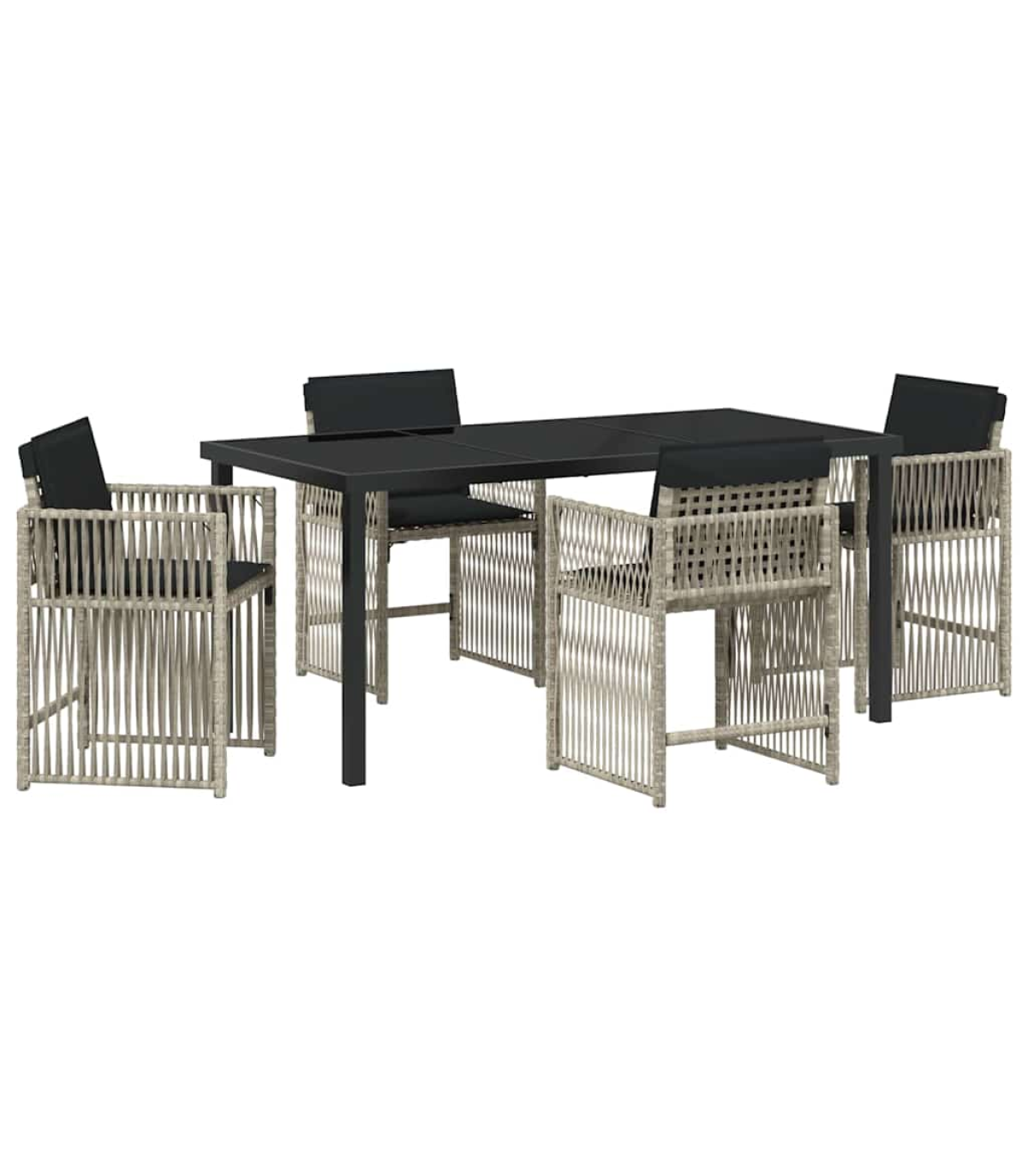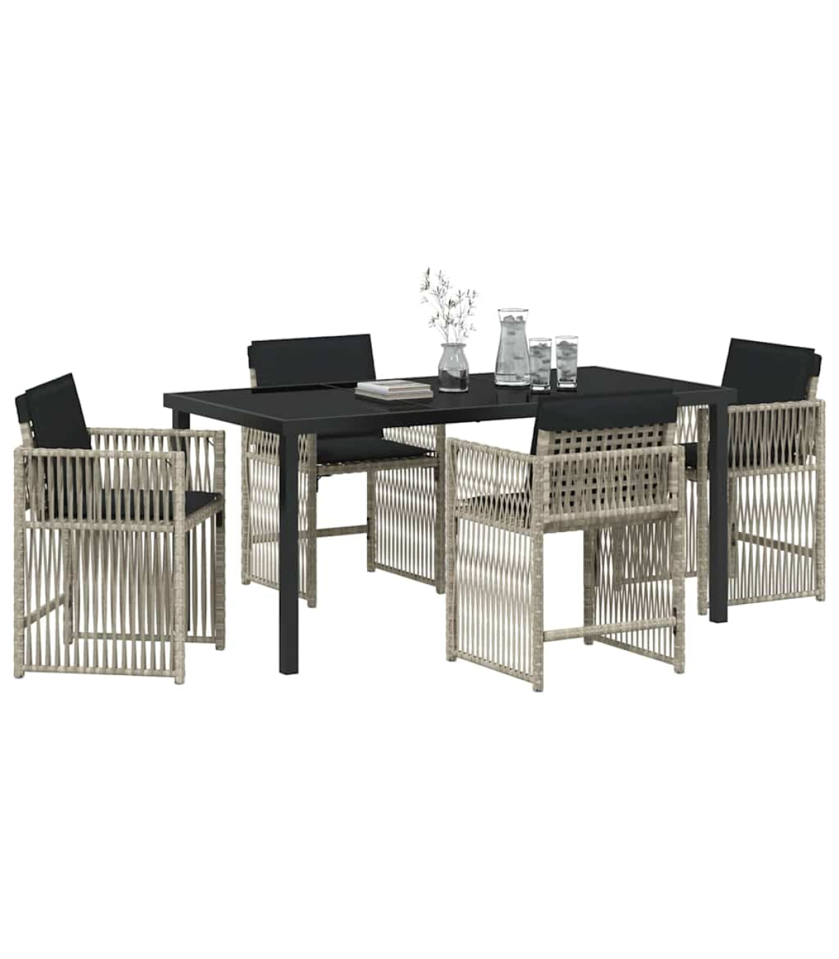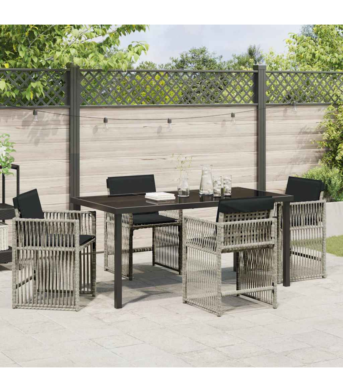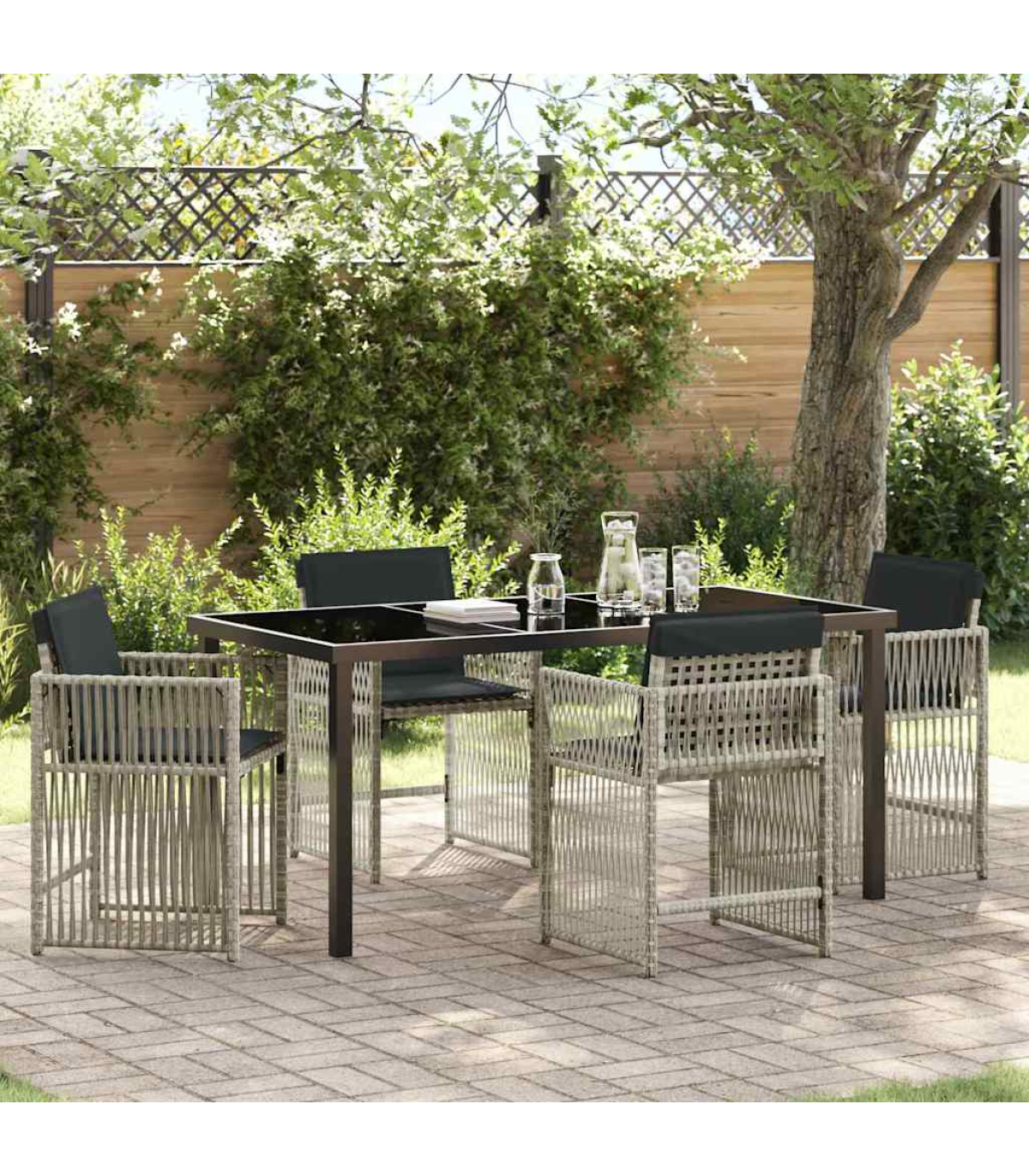 This Modern Garden Dining Set is the ultimate in cool outdoor furniture, mixing style with practicality. Built for your garden or terrace, it gives you a warm space for socialising, where chic meets handy. Its sleek look works beautifully in modern outdoor areas, making it a standout piece for garden parties or casual family dinners. The simple design is enhanced by solid materials and clean lines, ideal for those who love contemporary décor. Materials: This furniture set is mainly made from poly rattan, known for being strong and resistant to the weather, so it lasts ages even with regular outdoor use. It blends the sleek look of poly rattan with a solid steel frame, giving you the perfect mix of style and strength. Plus, it looks great and is easy to maintain—definitely a win for outdoor spaces. Included Components: It comes with a glass tabletop that's classy and a breeze to clean up after meals. The set has comfy poly rattan backrests and armrests, designed for support during laid-back dinners. The sturdy legs ensure it stays firm on different surfaces, while the soft polyester fill adds to your comfort for every meal. Features / Function / Design: Made to hold up against outdoor wear and tear, this set is built to last. It's designed to stay unaffected by hot summers, keeping both its look and function intact. This set shows how great design can last, which outdoor furniture fans will truly appreciate. Recommended Uses: Perfect for outdoor dining in gardens or terraces, this set is flexible for all sorts of gatherings, whether you're hosting family dinners or chilled-out get-togethers. From sunny brunches to evening parties, it creates a lovely and welcoming feel, making sure your guests feel at home. It goes beyond just dining, fitting both casual and more posh occasions. Care & Maintenance: Cover the set when you’re not using it, especially if the weather turns. This simple tip keeps it in great shape for years to come. Also, give it a wipe down with a damp cloth regularly to keep it looking sharp. No need for harsh cleaning products, so it stays in good nick effortlessly.