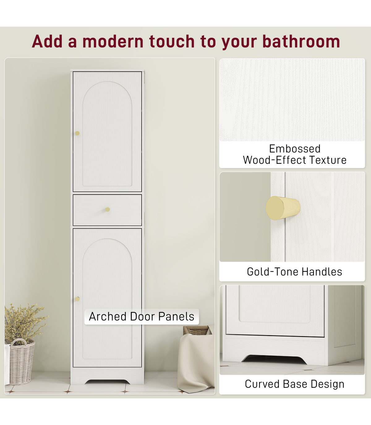 - Tall, slim design fits easily into small or narrow bathroom spaces