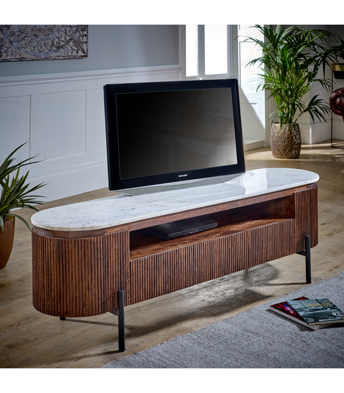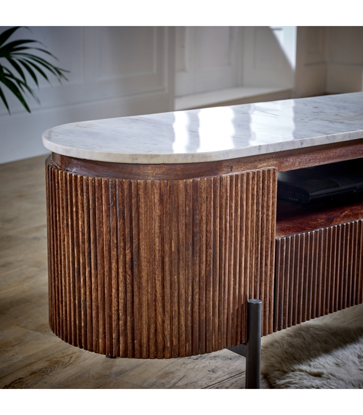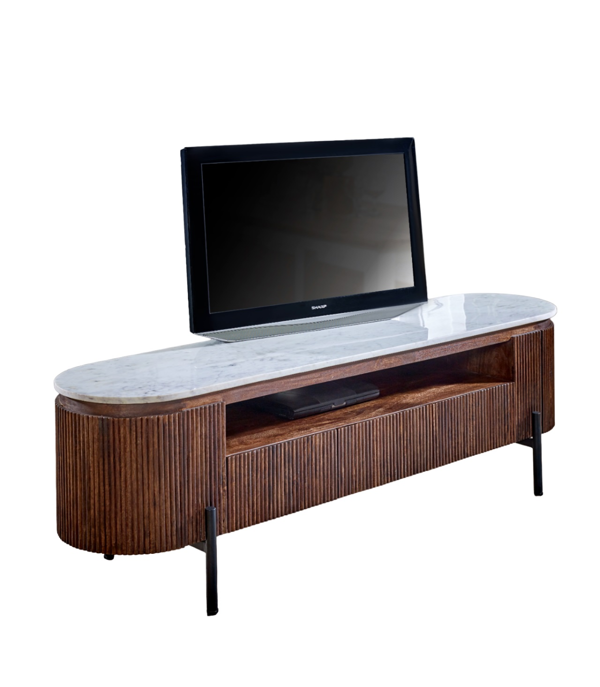 Opal Mango Wood Large Tv Stand With Marble Top & Metal Legs