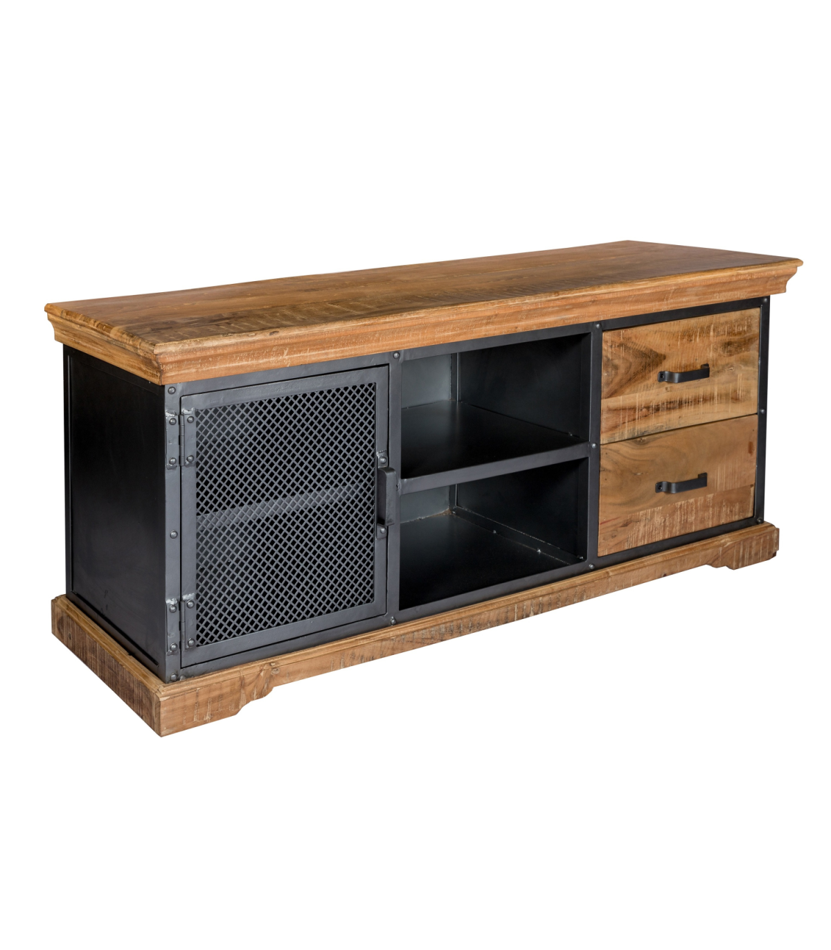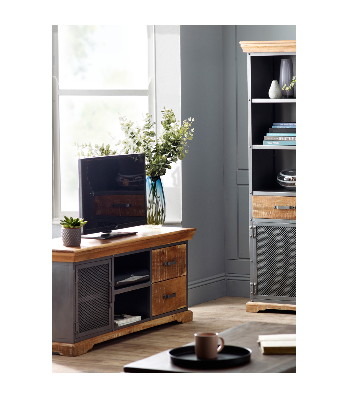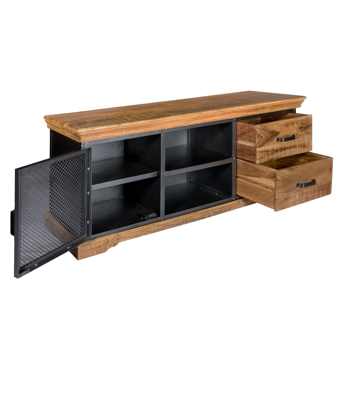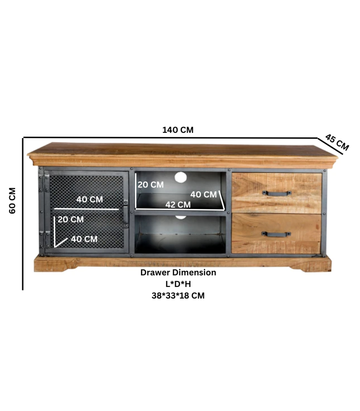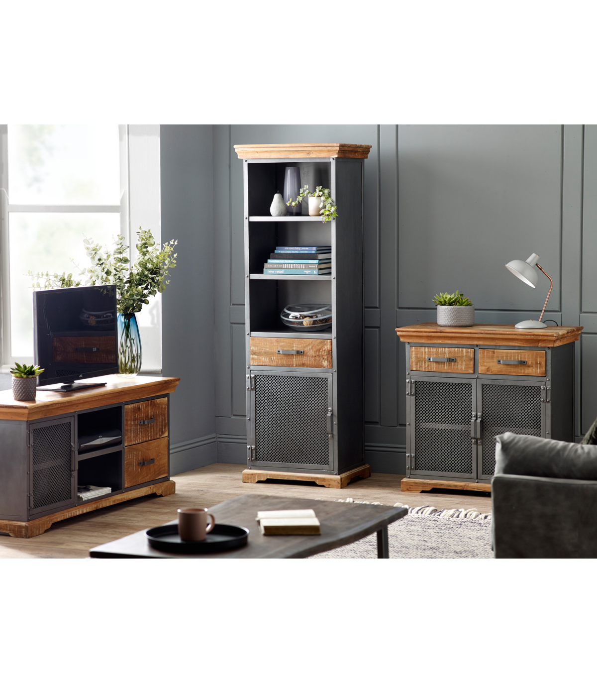 This modern solid wood and metal style furniture is created by skilled craftsmen using reclaimed metal and slightly distressed wood. The solid wood features sandblasted white stain in combination with gun metal patina applied to the metal frames, creating a very modern and versatile range. Material - Solid Wood, Asshmebly - Fully Assembled, Drawer/Cupboard dimensions (cm)Drawer- 18x38x33/ Cupboard- 20x40x40 - Drawer- 18x38x33/ Cupboard- 20x40x40, Shelves dimensions (cm) - 20x42x40, Collection Name - Metropolis Industrial