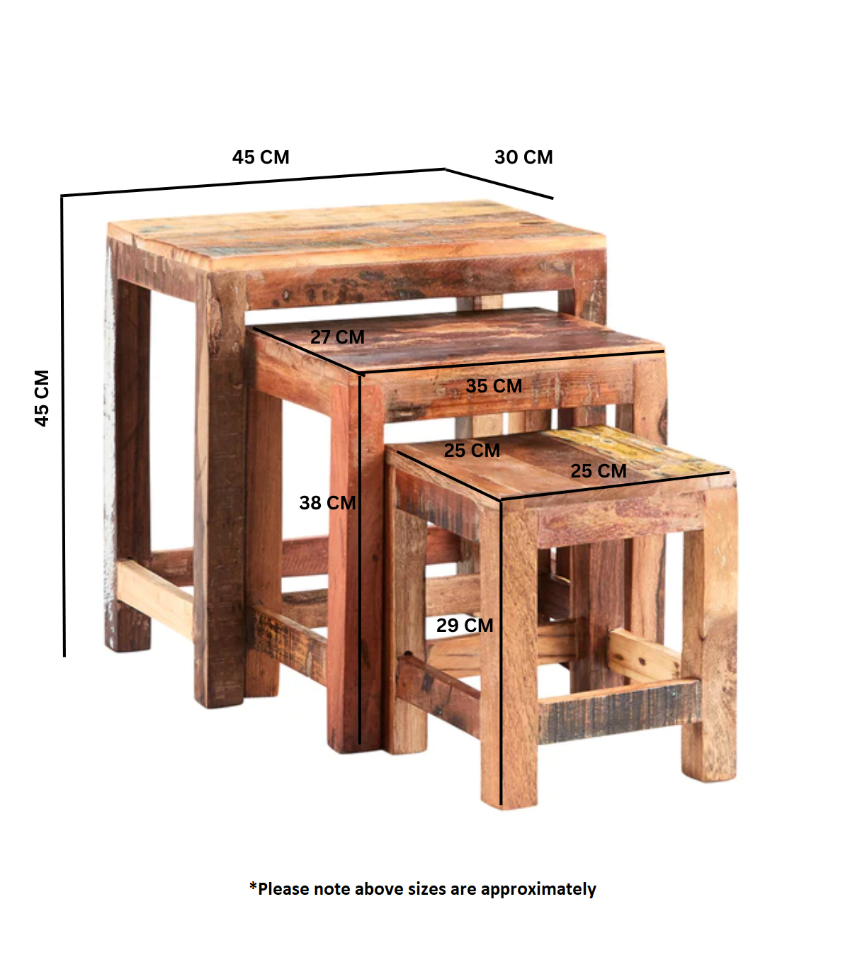 The Coastal Collection is made from 100% solid reclaimed wood featuring rustic markings and colour variations of the different woods used. Each piece is hand finished, sturdy and durable.