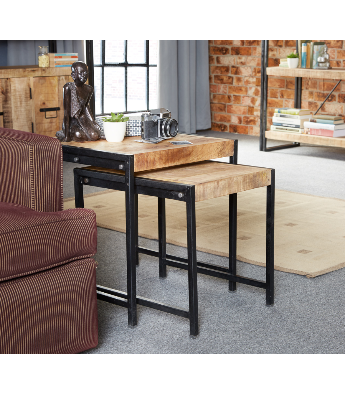 Eco-friendly, hand-crafted range, made from Solid Mango Wood and Reclaimed Industrial Metal. The light grain hardwood is left in its natural state and colour, offering natural variations and slight cracking with banded iron edges