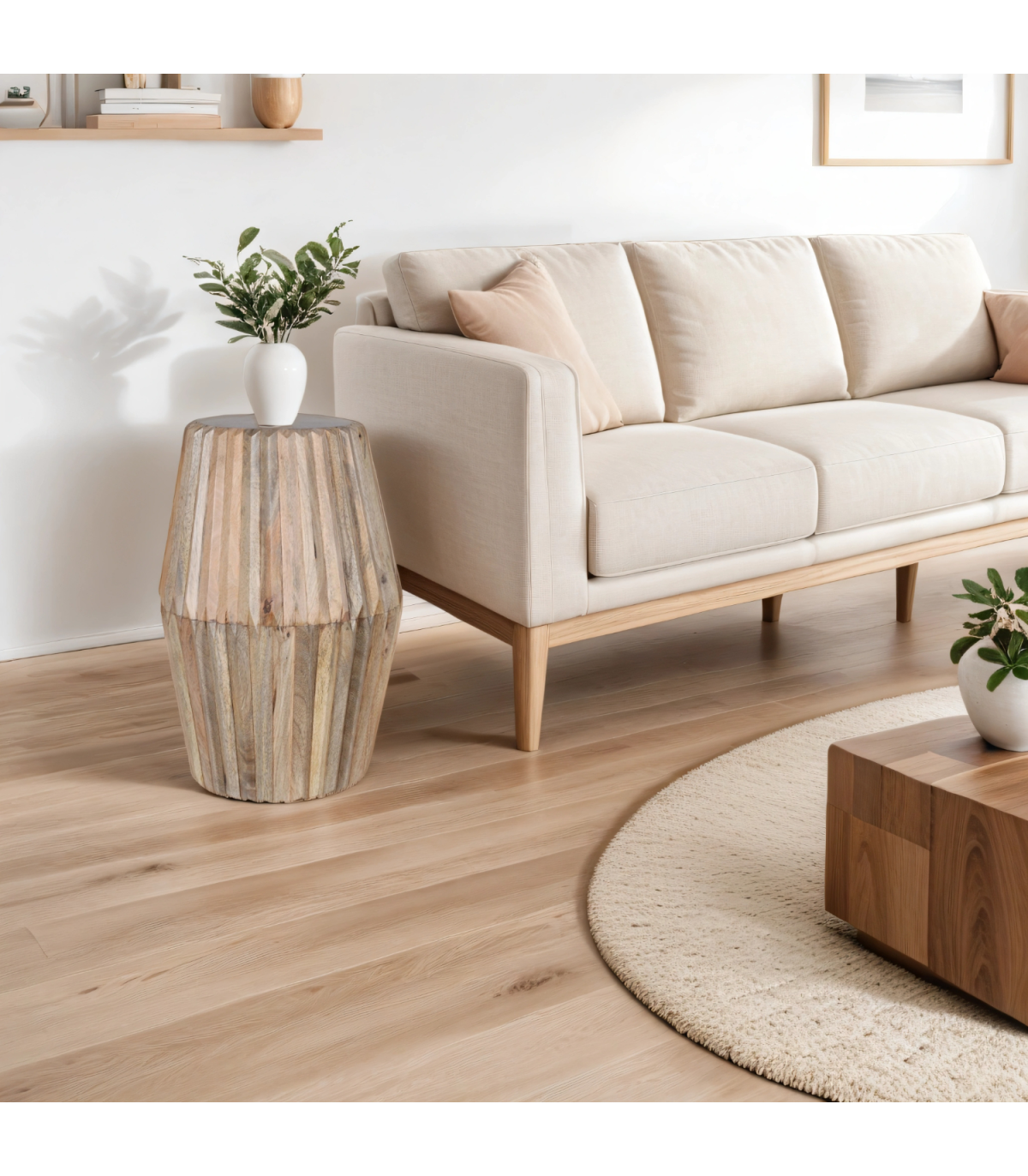 Hudson Carved Mango Wood Side Table