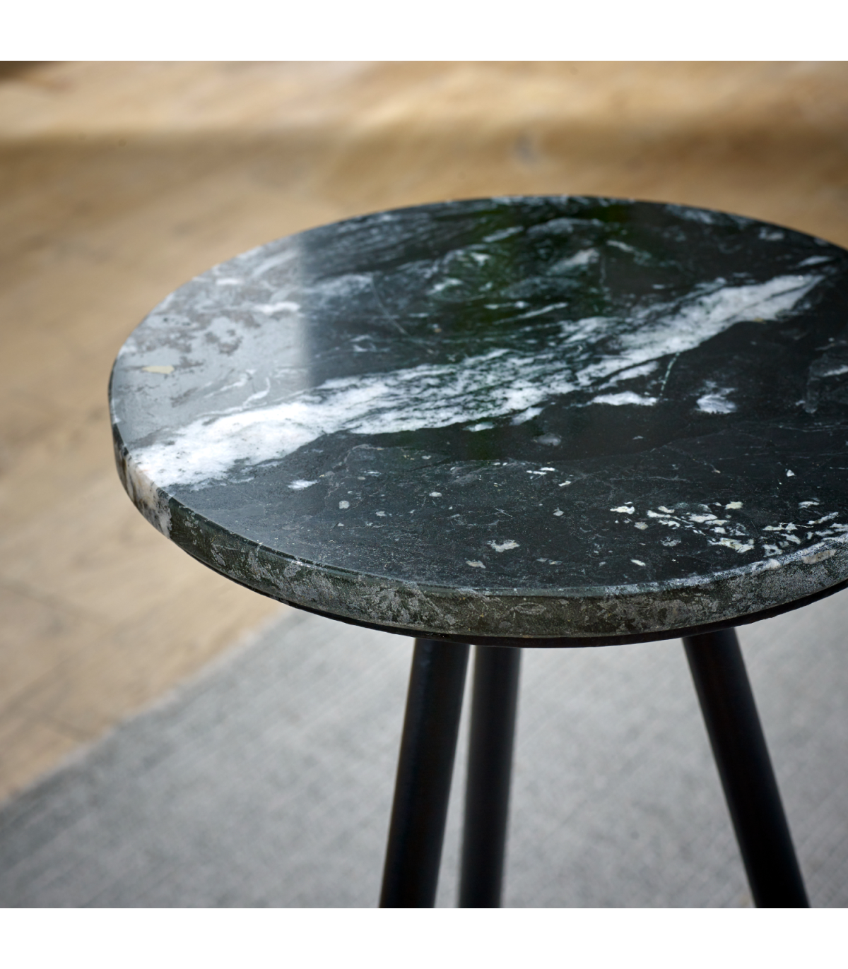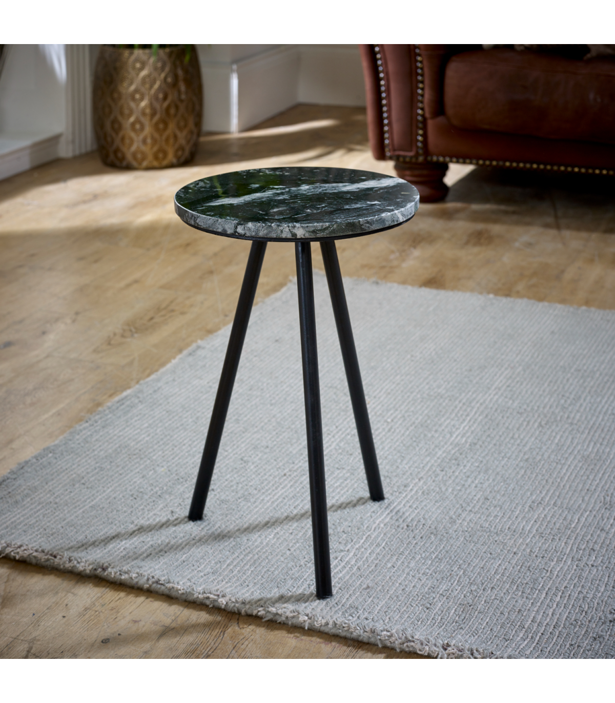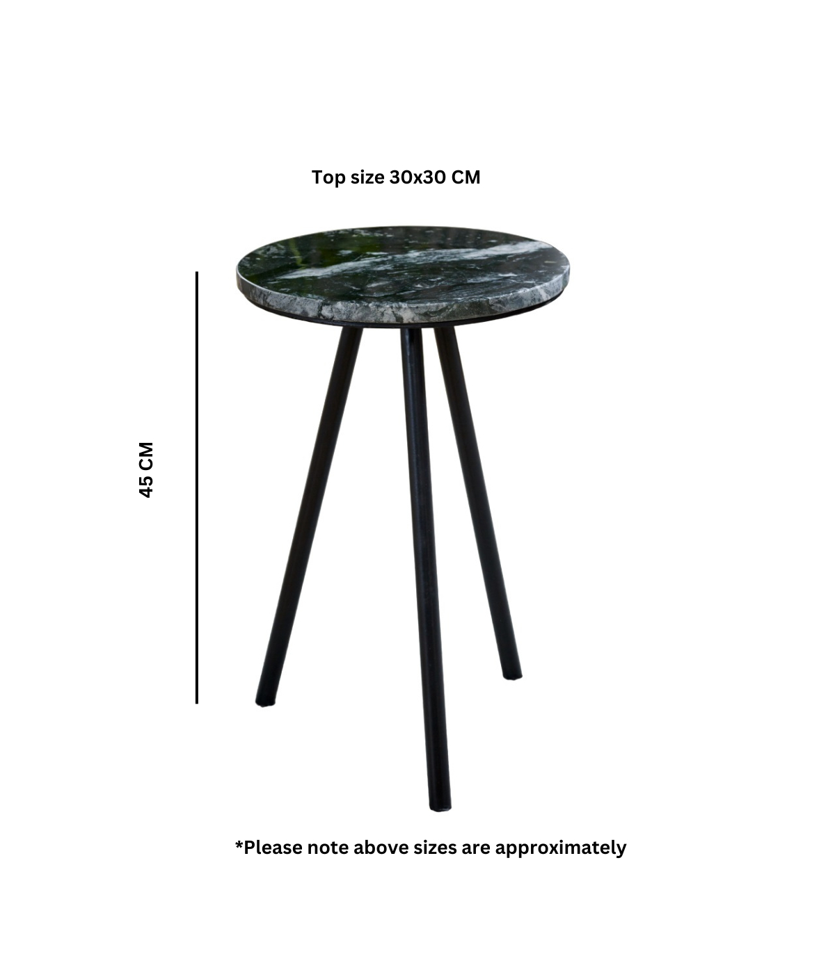 This very sturdy but minimalist side table will fit perfectly into any room of your choosing. Ideal for holding the remote / cup of coffee or glass of wine whilst you are relaxing, it will also be capable of holding any plant or flowers you are looking to showcase. The sleek black marble top paired with metal legs ensure that this will last for a very long time and will not look out of place with any existing decor. Completely handmade by our skilled craftsmen in India using eco friendly materials. Made from metal and natural marble it is an extremely versatile piece of furniture.