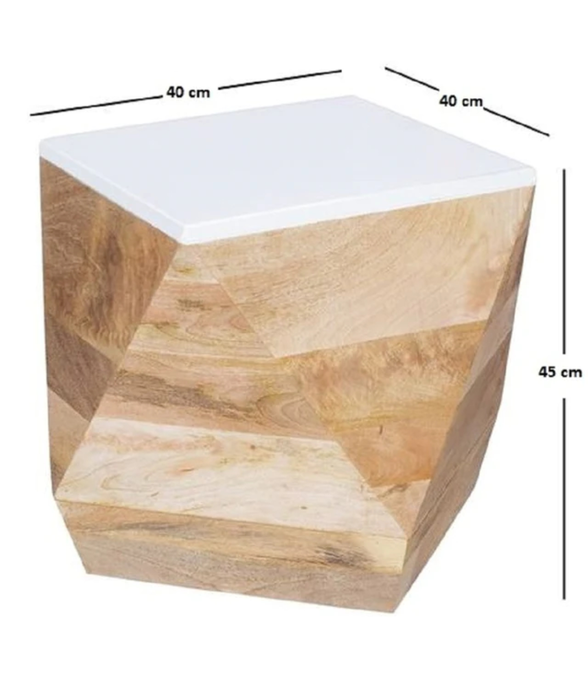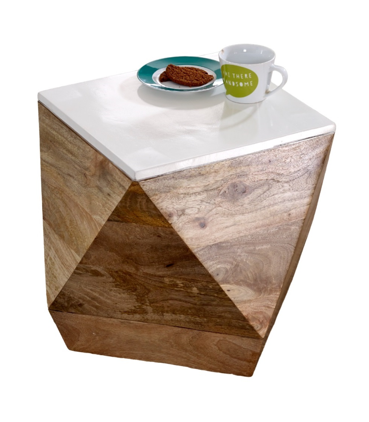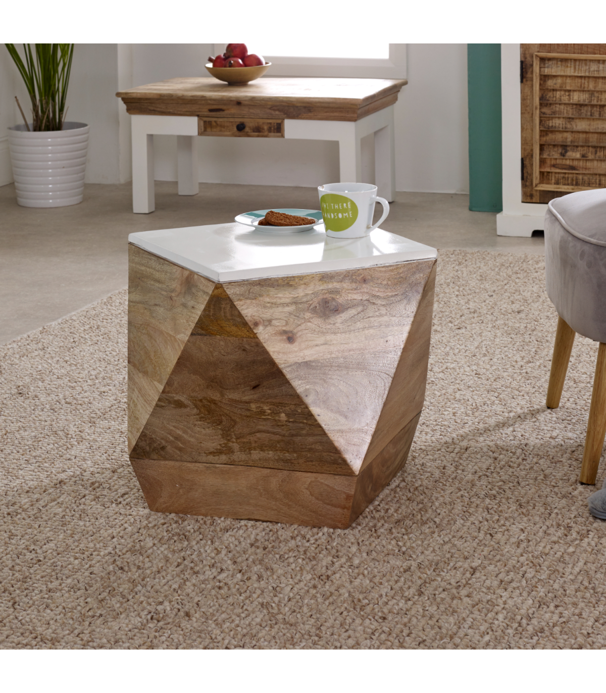Mango side table with contrasting white top and natural colour finish. Handmade by skilled craftsmen in India using 100% eco sourced wood, making each piece individual and unique. Material - Mango Wood, Asshmebly - Fully Assembled, Collection Name - Alfie