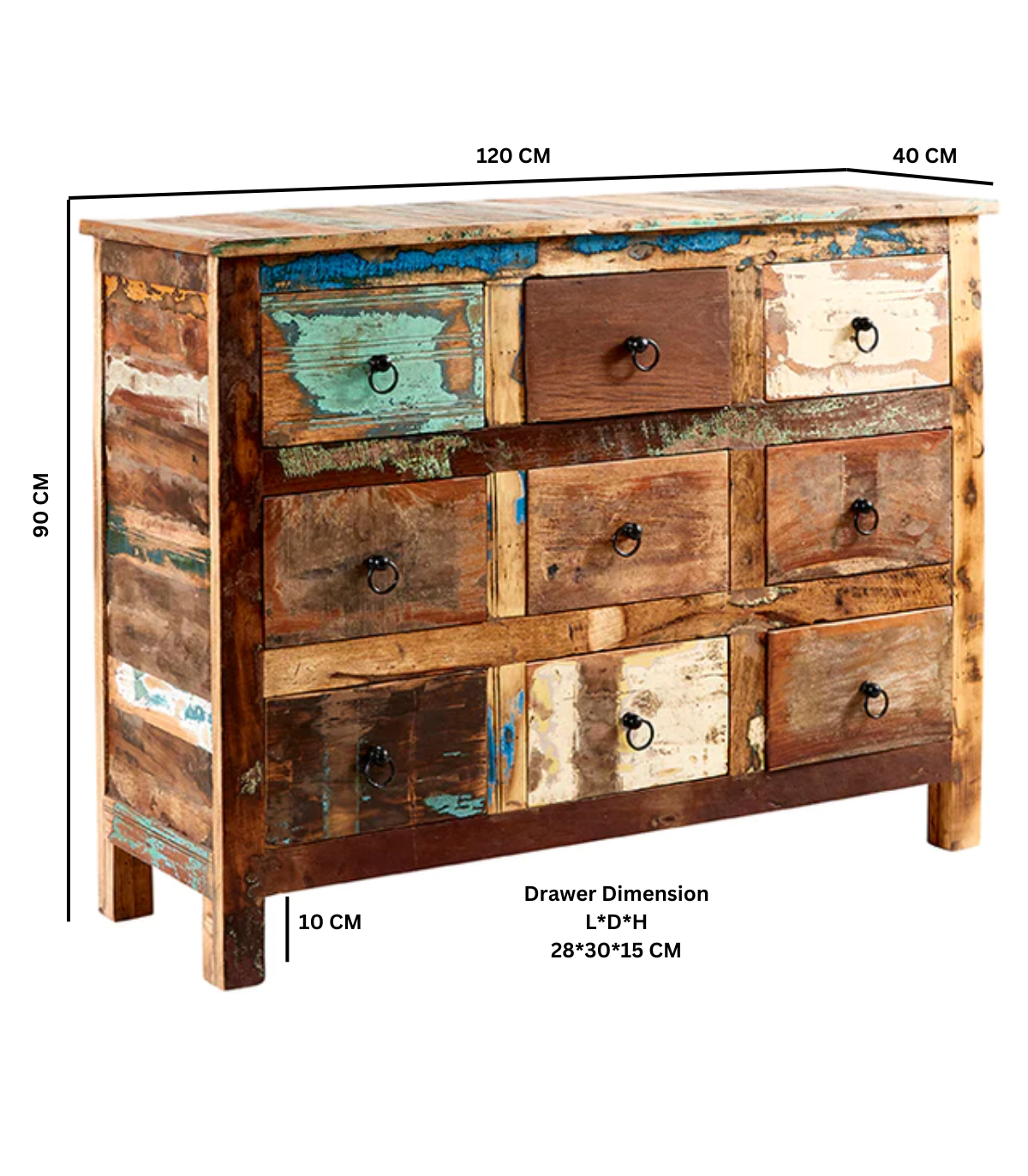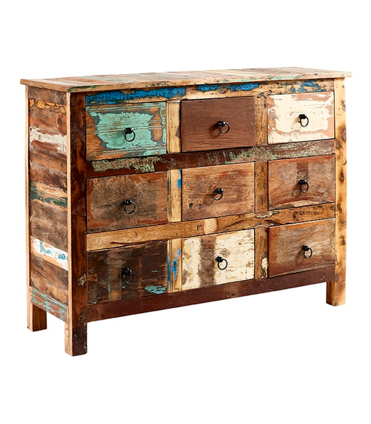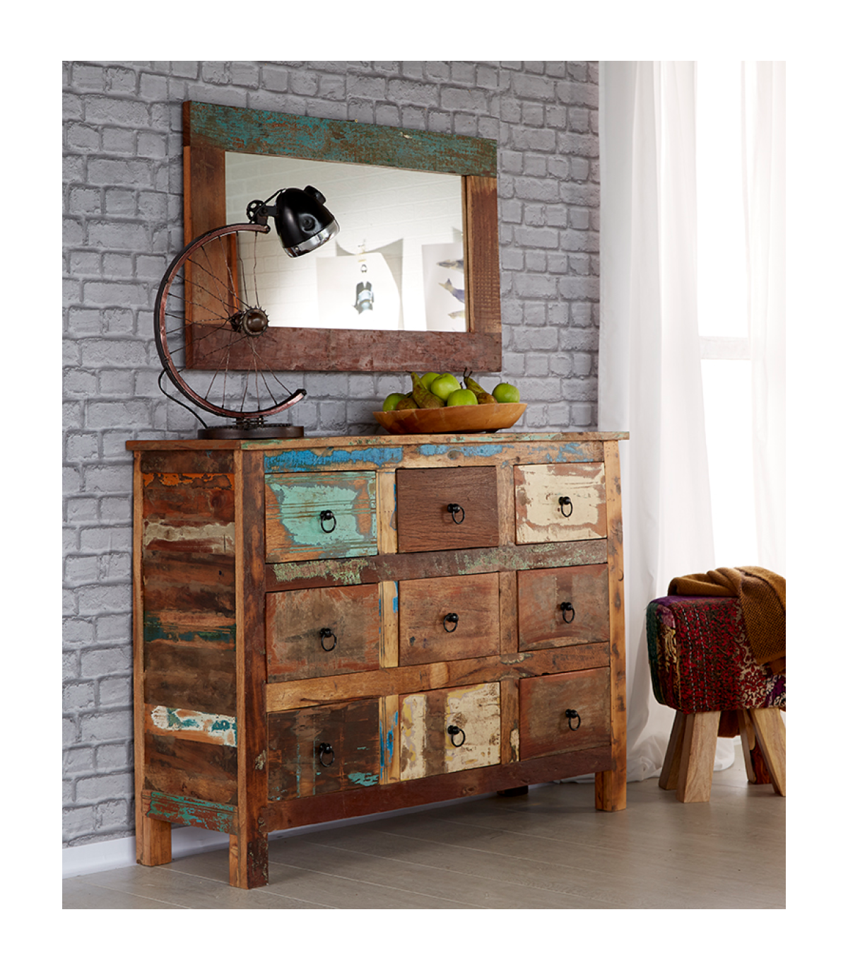 Hand-crafted by our own skilled craftsmen this range offers a new dimension to furniture making. Each drawer is made from different material which makes each product unique, finished with traditional handles and knobs.
