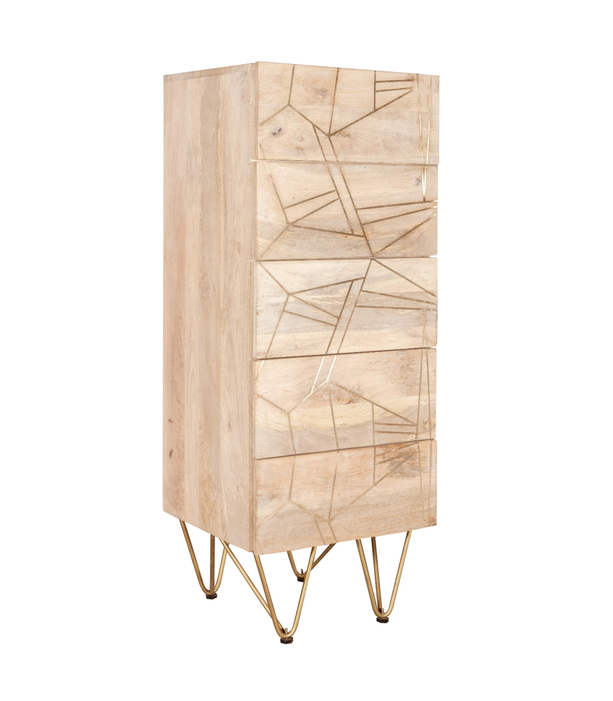 This modern contemporary style furniture combining metal inlay on solid wood creating an abstract style, is taking the furniture making to a whole new level. The angled legs made of metal adds to the retro vintage look. Material - Solid Wood, Asshmebly - Partial, Drawer/Cupboard dimensions (cm)12x37x28 - 12x37x28, Collection Name - Light Gold