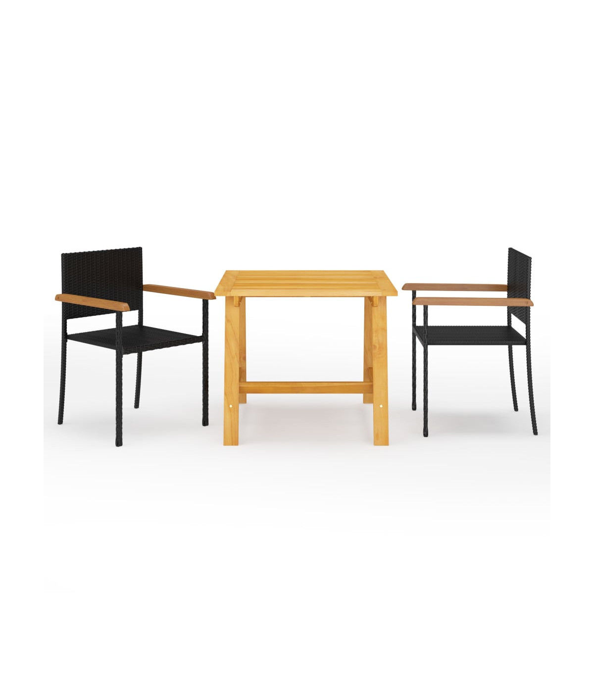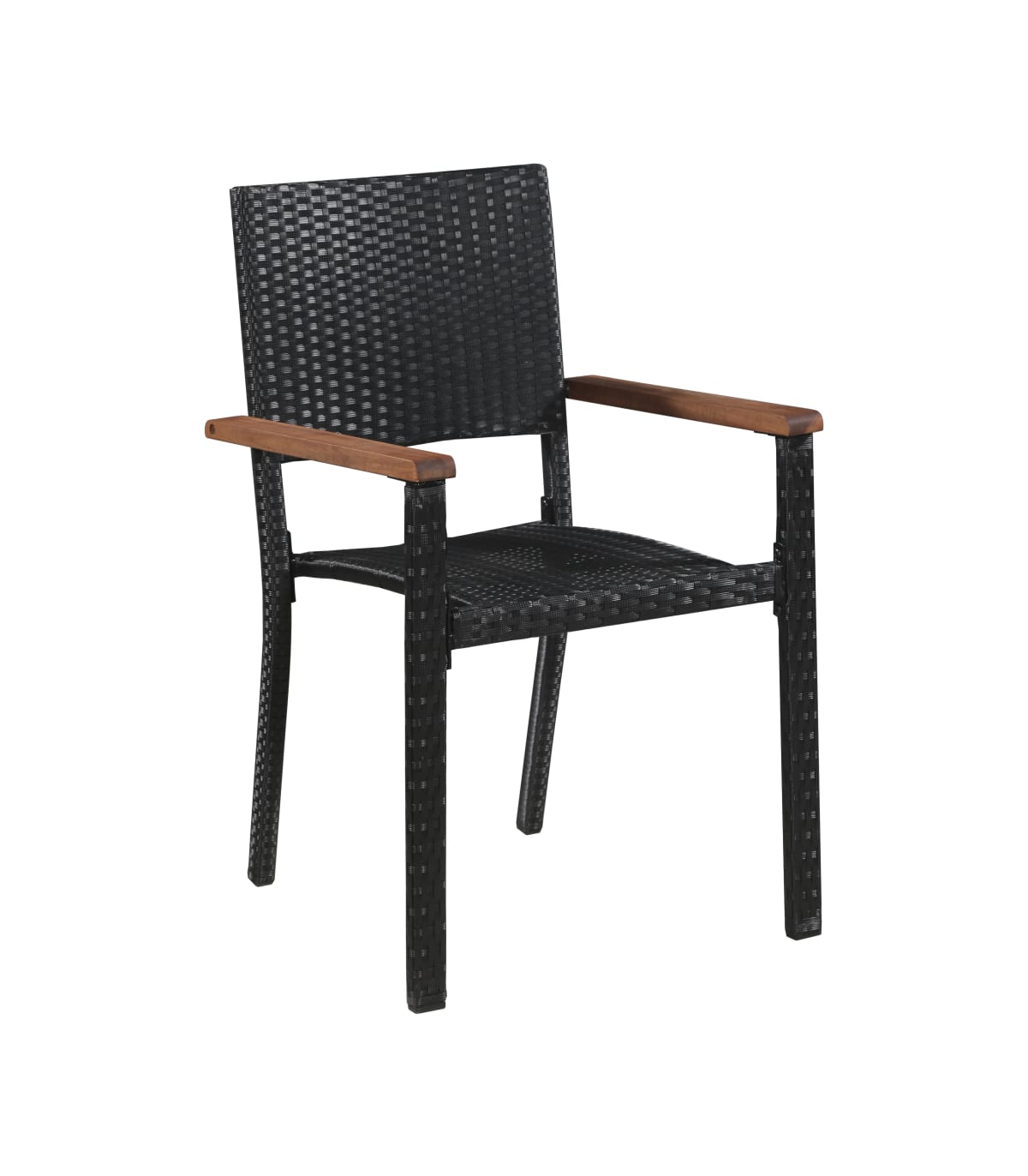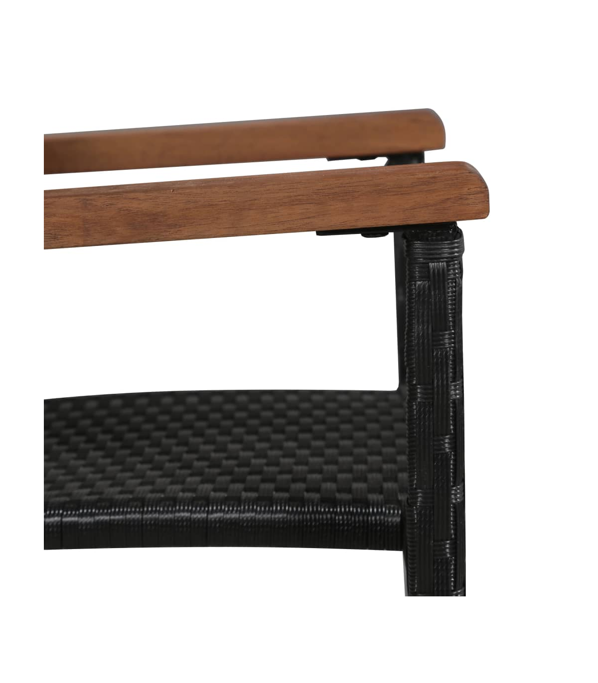 - Material: PE (polyethylene) rattan, powder-coated steel, solid acacia wood