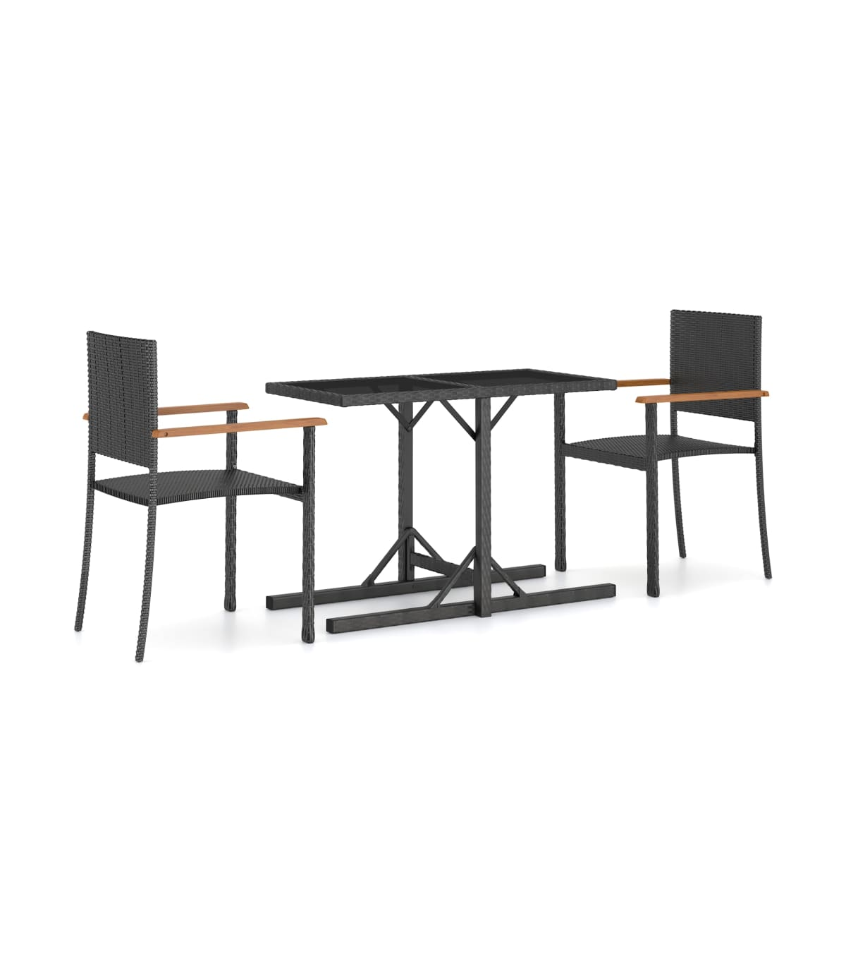 Create a compelling and cohesive aesthetic in your outdoor space with this garden dining set! Featuring a powder-coated steel frame covered with weather-resistant PE rattan, this dining set is sturdy and easy to clean. The glass tabletop adds a sumptuous touch to your outdoor space. Note: In order to extend the life of your outdoor furniture, we recommend you to clean it regularly and do not leave it outdoors without protection unnecessarily.Clean: Use a mild soap solutionStoring: If possible, store in a cool, dry place indoors. If the product is stored outdoors, protect it with a waterproof cover. Wipe and dry the excess water or snow from flat surfaces after a rain or snowfall. Allow sufficient air circulation to avoid moisture-related damage.