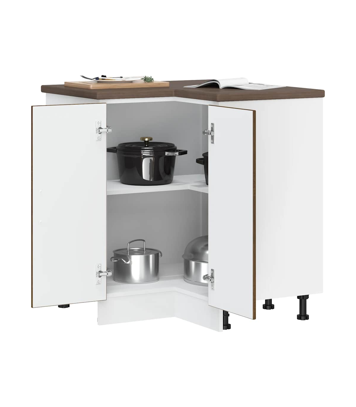 This kitchen corner base cabinet optimises your kitchen space, providing ample storage space for your personal belongings! Stable and durable material: Engineered wood is a durable and stable material with a smooth surface that is resistant to moisture, warping, and splitting, making it a reliable choice for a variety of projects.Ample storage space: The kitchen corner base cabinet offers sufficient space to store bowls, plates, pots, and other kitchen appliances.Practical doors: The door helps maintain a clean and organised space by concealing kitchen appliances and clutter behind them.Adjustable feet: The feet of this cabinet can be adjusted in height to suit your kitchen layout.Easy to maintain: Thanks to its smooth surface, this kitchen corner base cabinet is easy to clean with a damp cloth and requires less maintenance. Warning:To prevent it from tipping over, this product must be used with the provided wall attachment device. Good to know:Screw(s) and plug(s) for inside the wall are not included. Seek and use screw(s) and plug(s) suitable for your walls. If you are uncertain, seek professional advice. Read and follow each step of the instruction carefully.