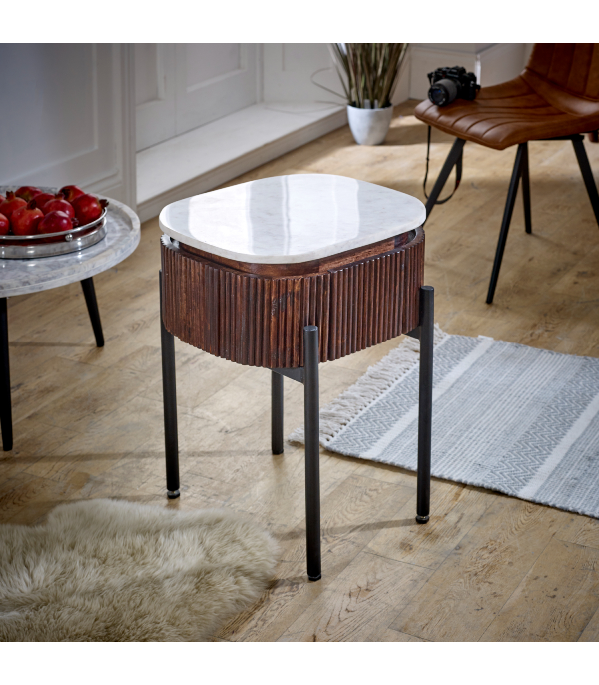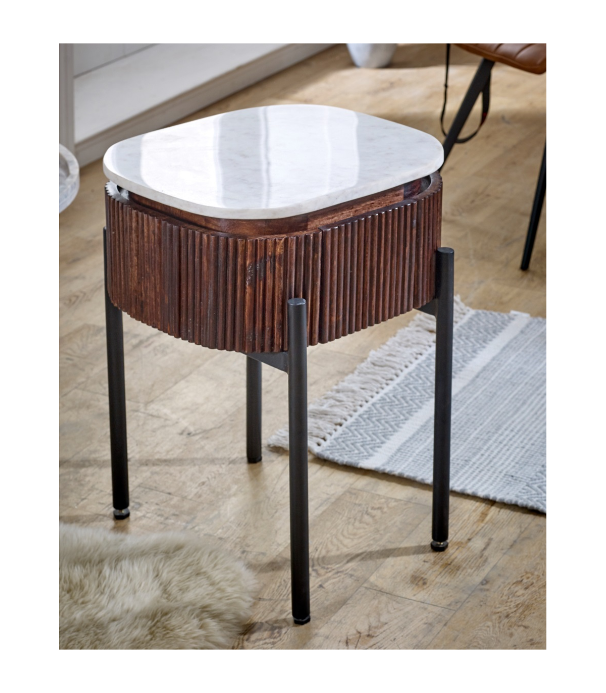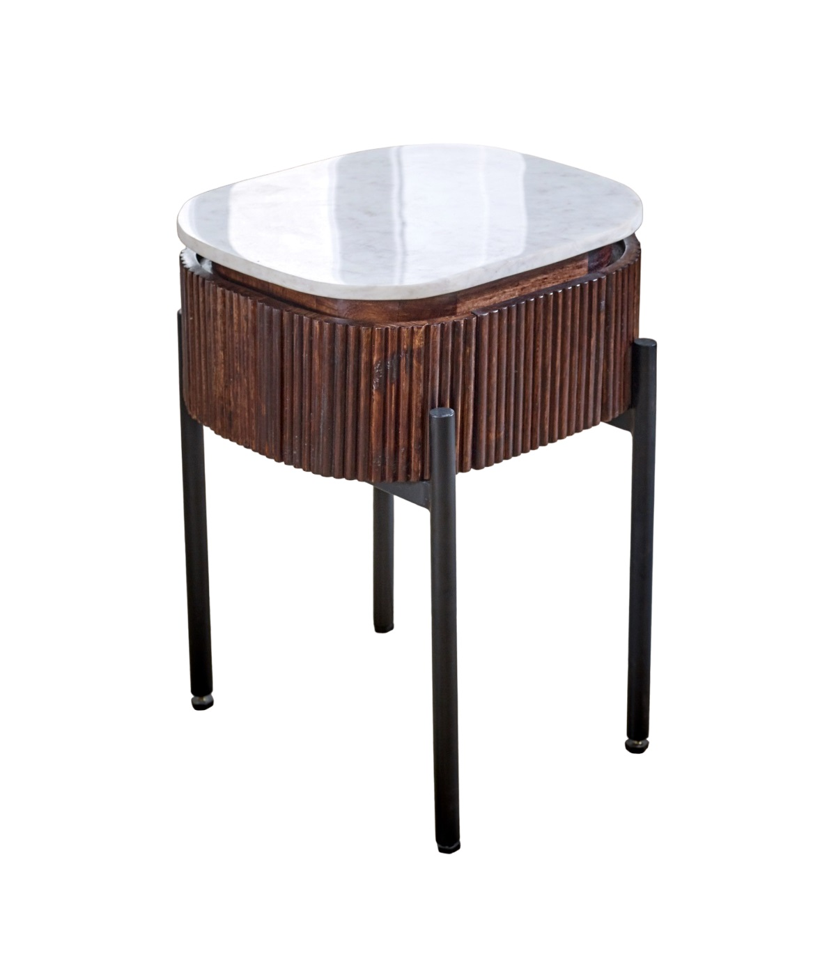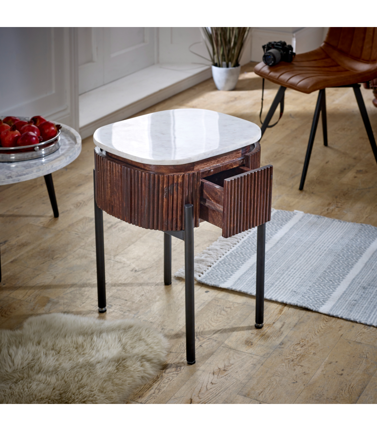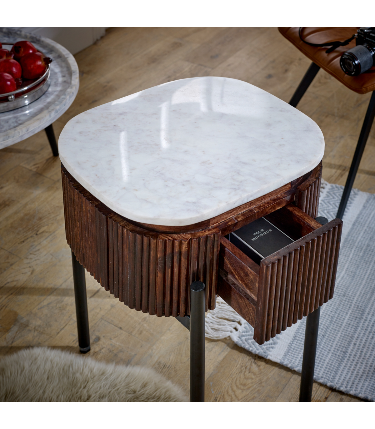 Opal Mango Wood Bedside Table With Marble Top & Metal Legs