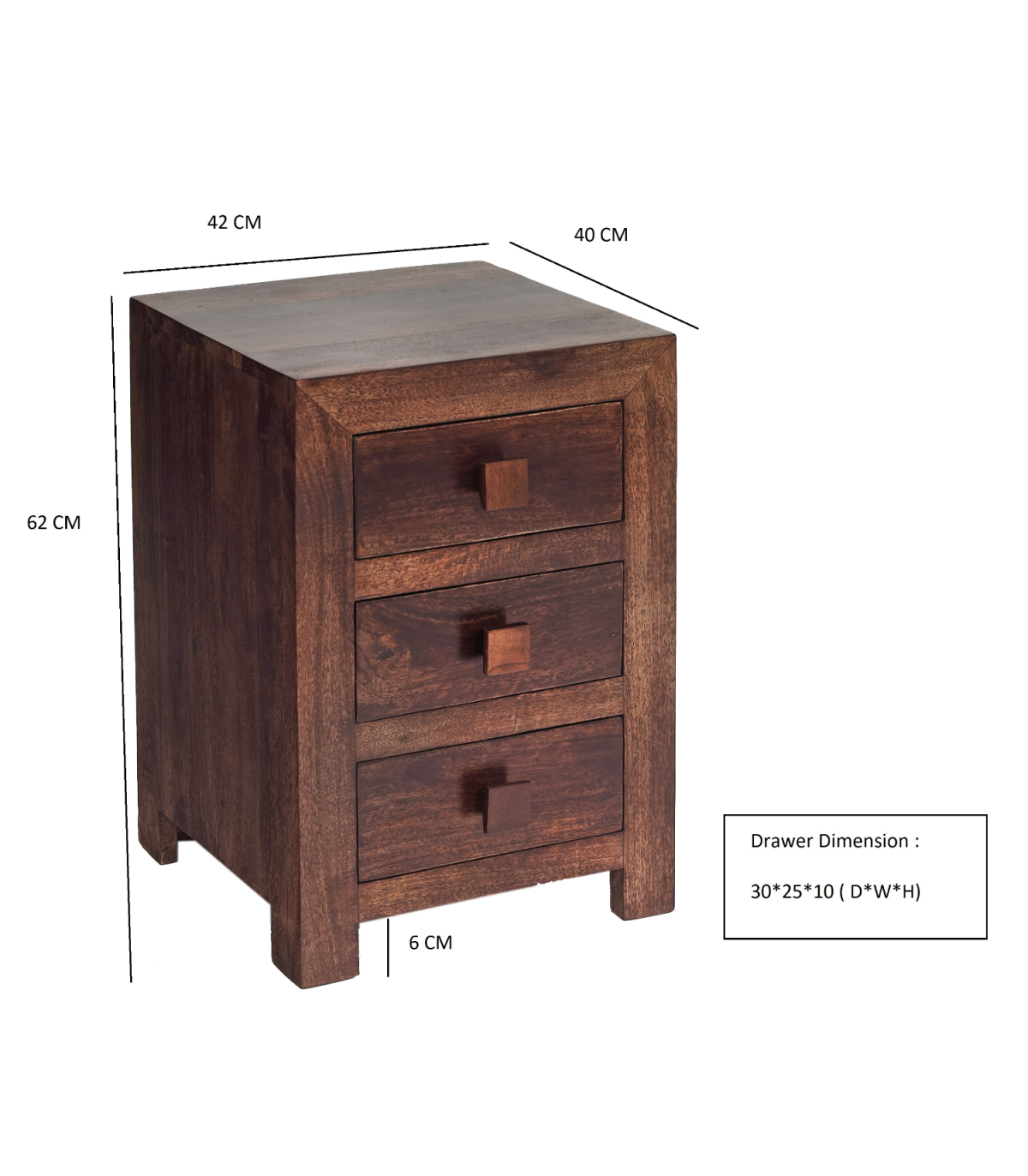 Toko Dark Mango 3 Drawer Bedside