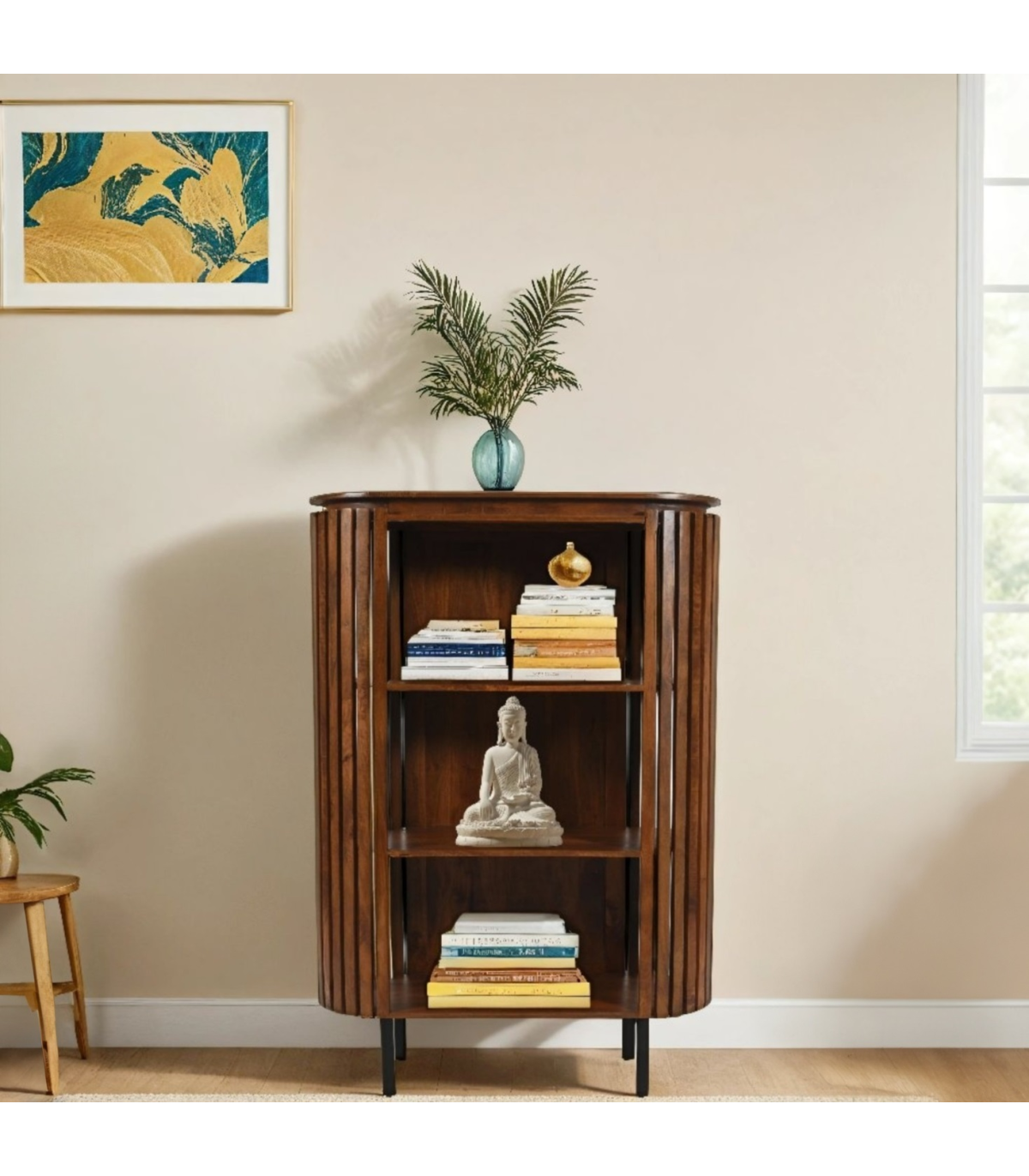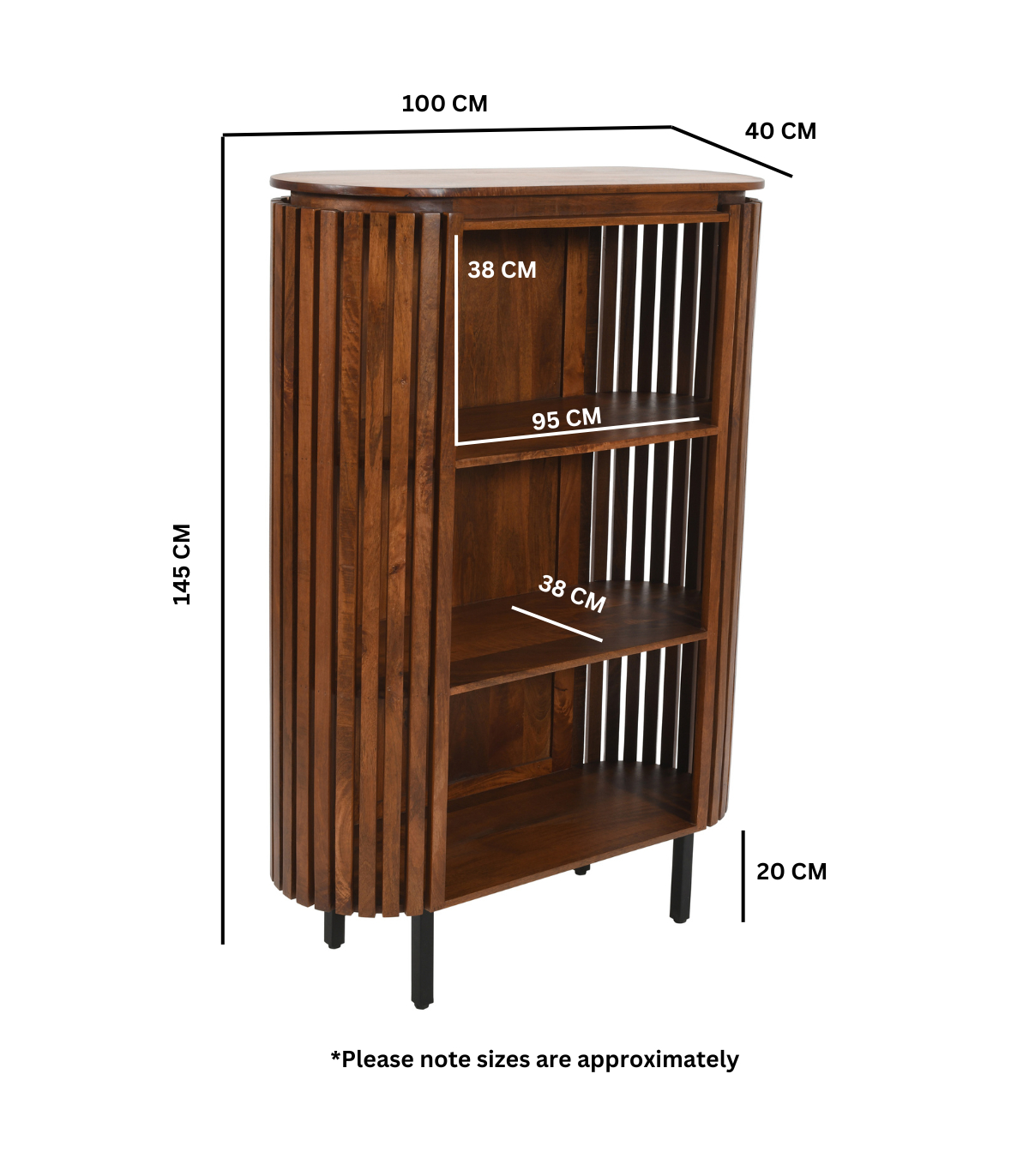 Hand-crafted by Skilled craftsmen in India this range offers a new dimension to furniture making with Solid wood. The range is eco-friendly, modern and versatile, Material - Mango Wood, Asshmebly - Partial, Shelves dimensions (cm) - 95x38x38, Collection Name - Slatted Mango Wood