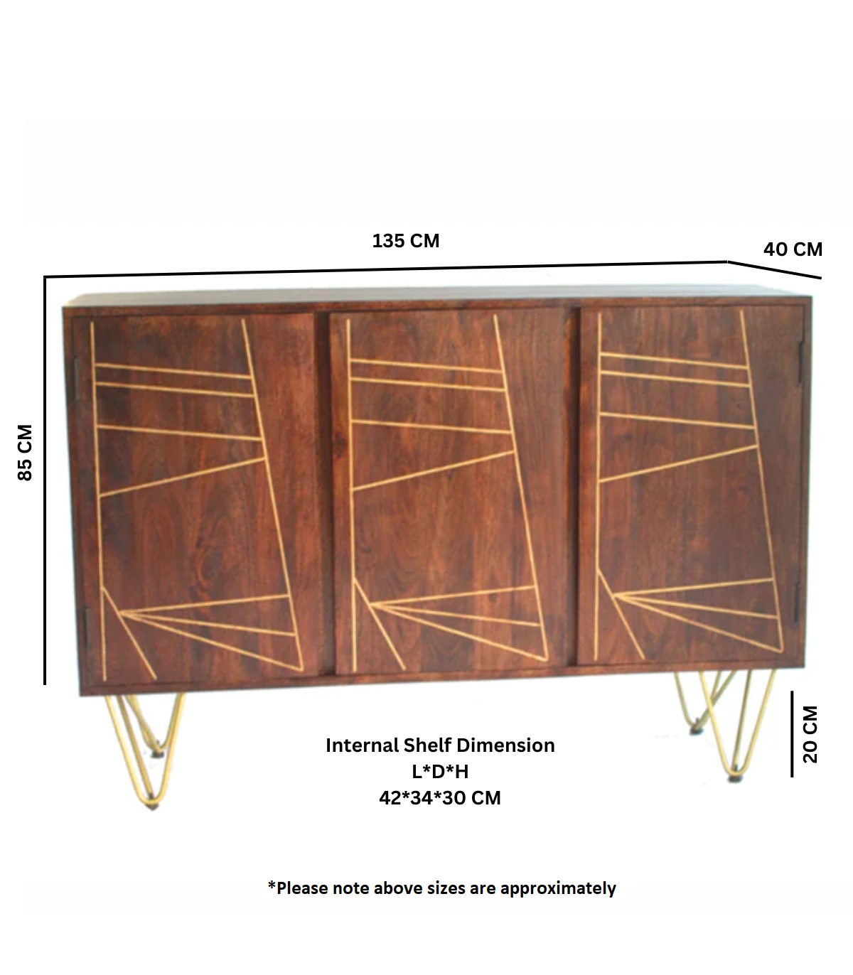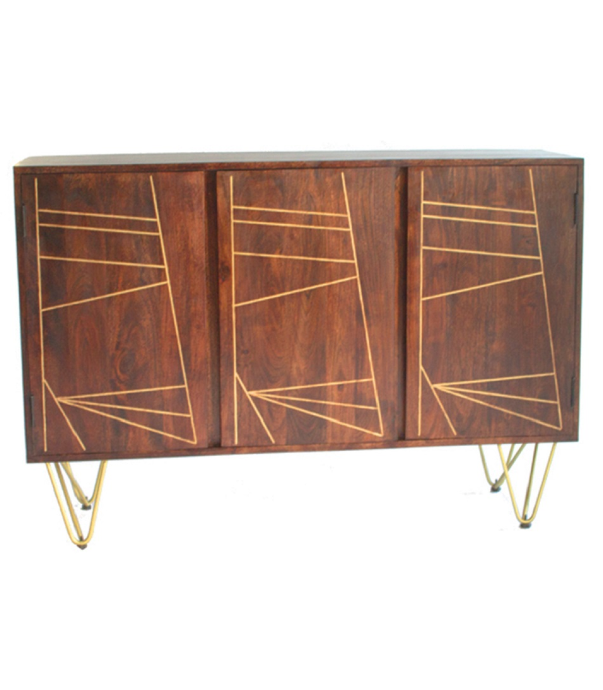 This modern contemporary style furniture combining metal inlay on solid wood creating an abstract style, is taking the furniture making to a whole new level. The angled legs made of metal adds to the retro vintage look.