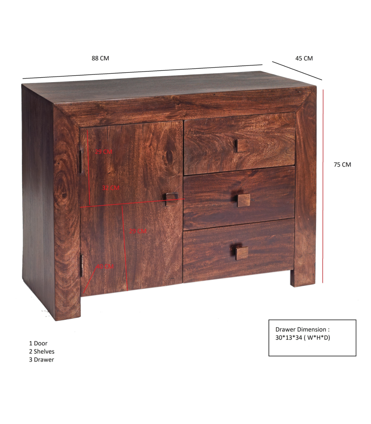 The Toko Mango is a stunning collection of contemporary Mango furniture made from sustainable sources with simple clean lines and real warmth from dark walnut stain complemented with matching wooden handles. Material - Mango Wood, Asshmebly - Fully Assembled, Collection Name - Toko Mango