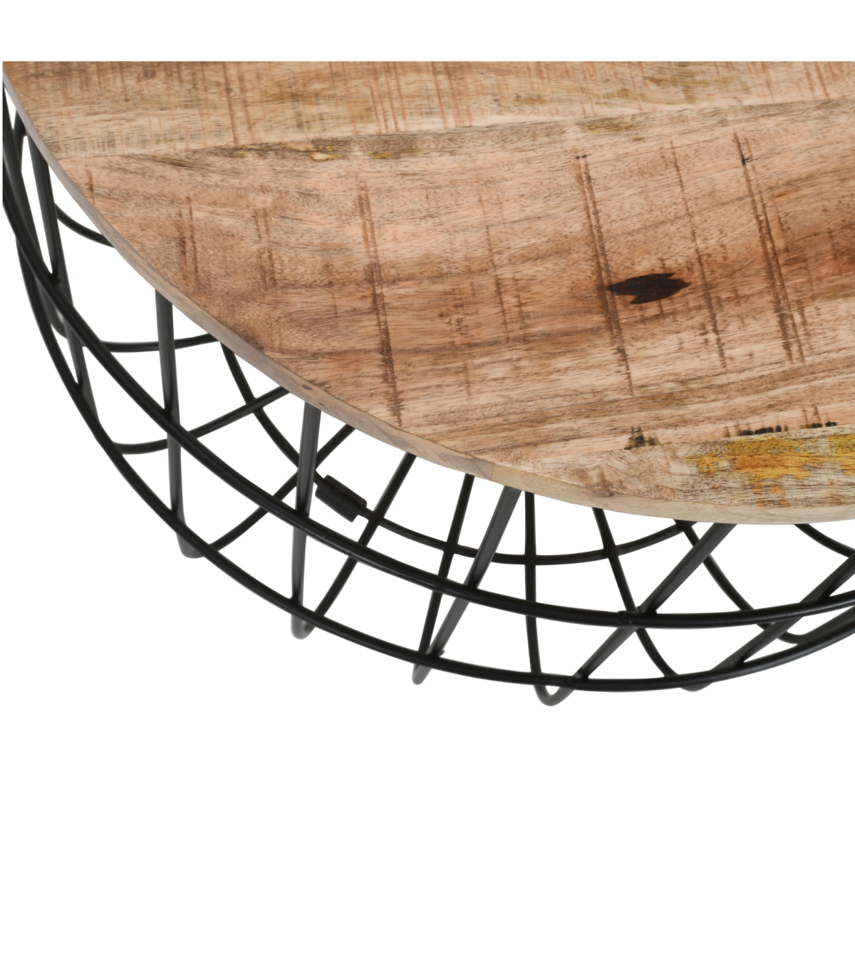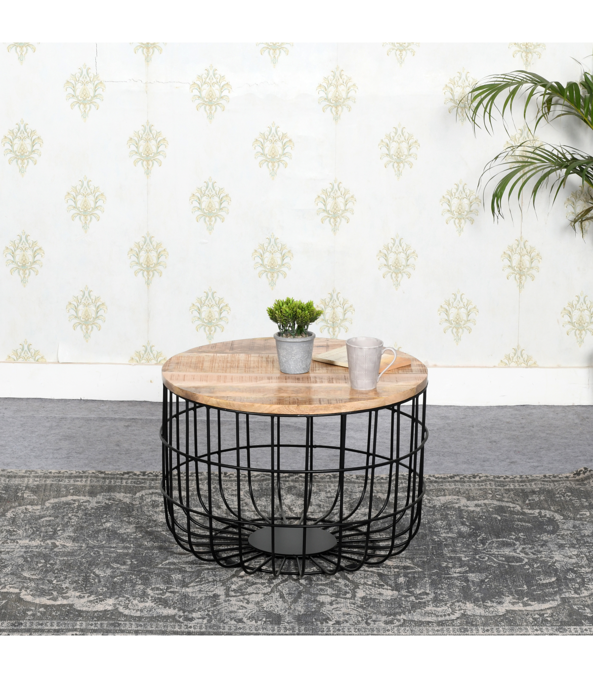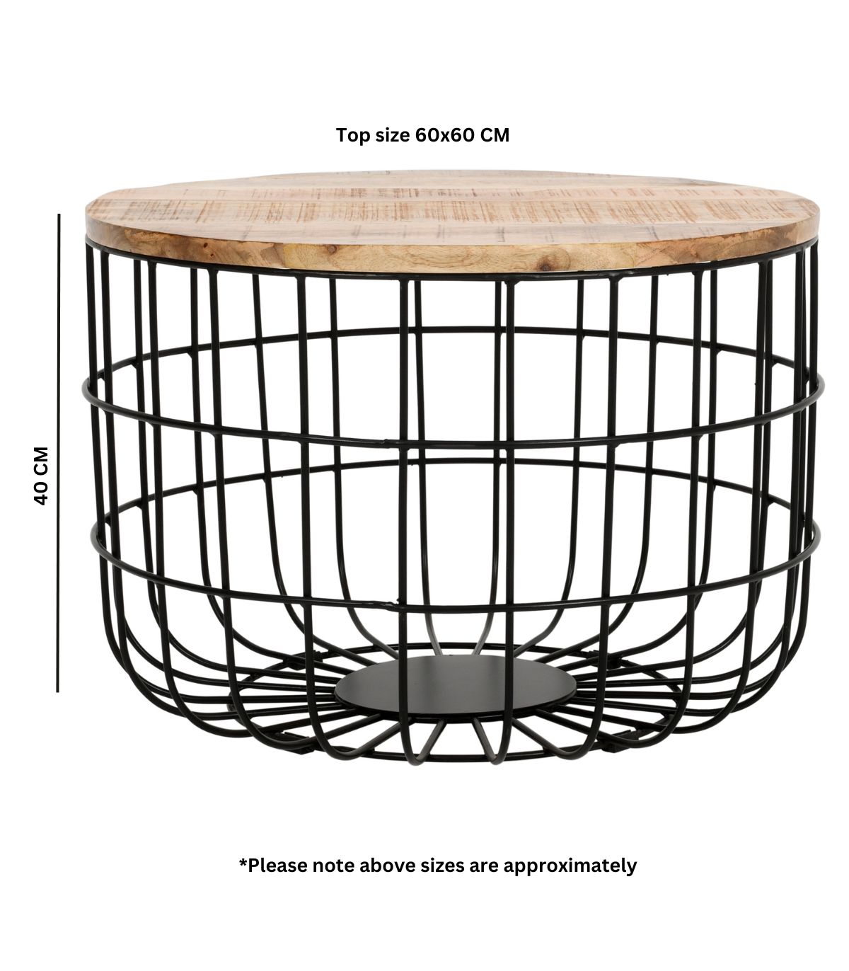 A coffee table with an added feature of storage ! Use it to add an accent colour to the room by filling with items in your colour of choice. Combining the solid mango wood top with black metal wire base this is sure to attract attention. Handmade using 100% Eco sourced solid natural wood by skilled craftsmen in India.