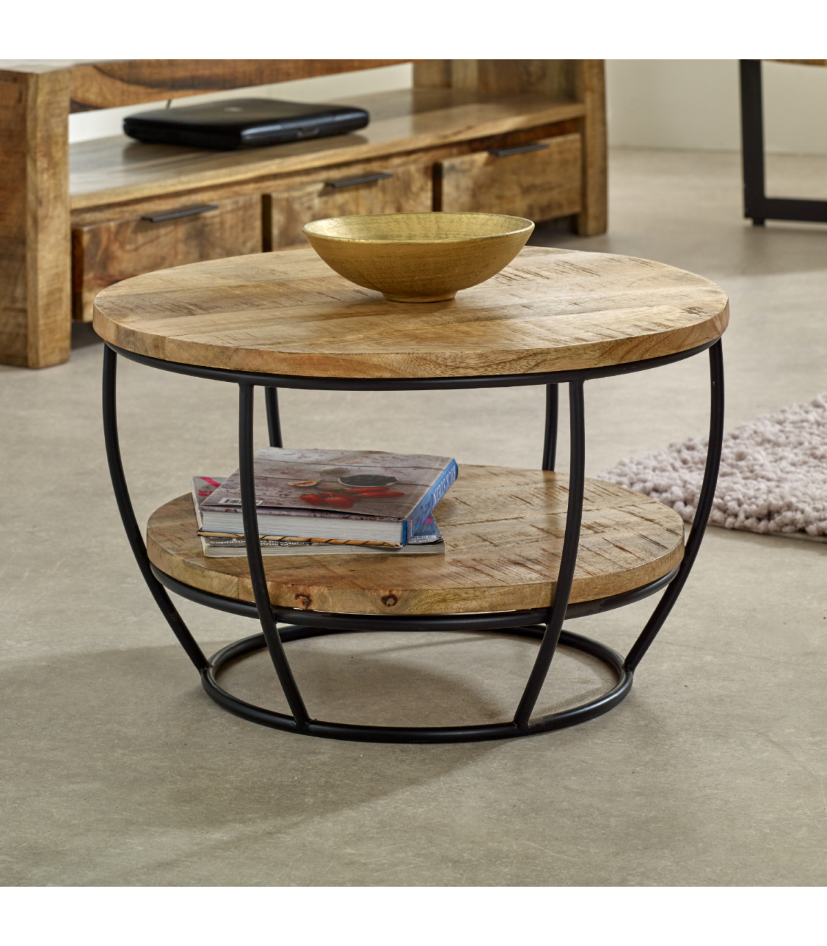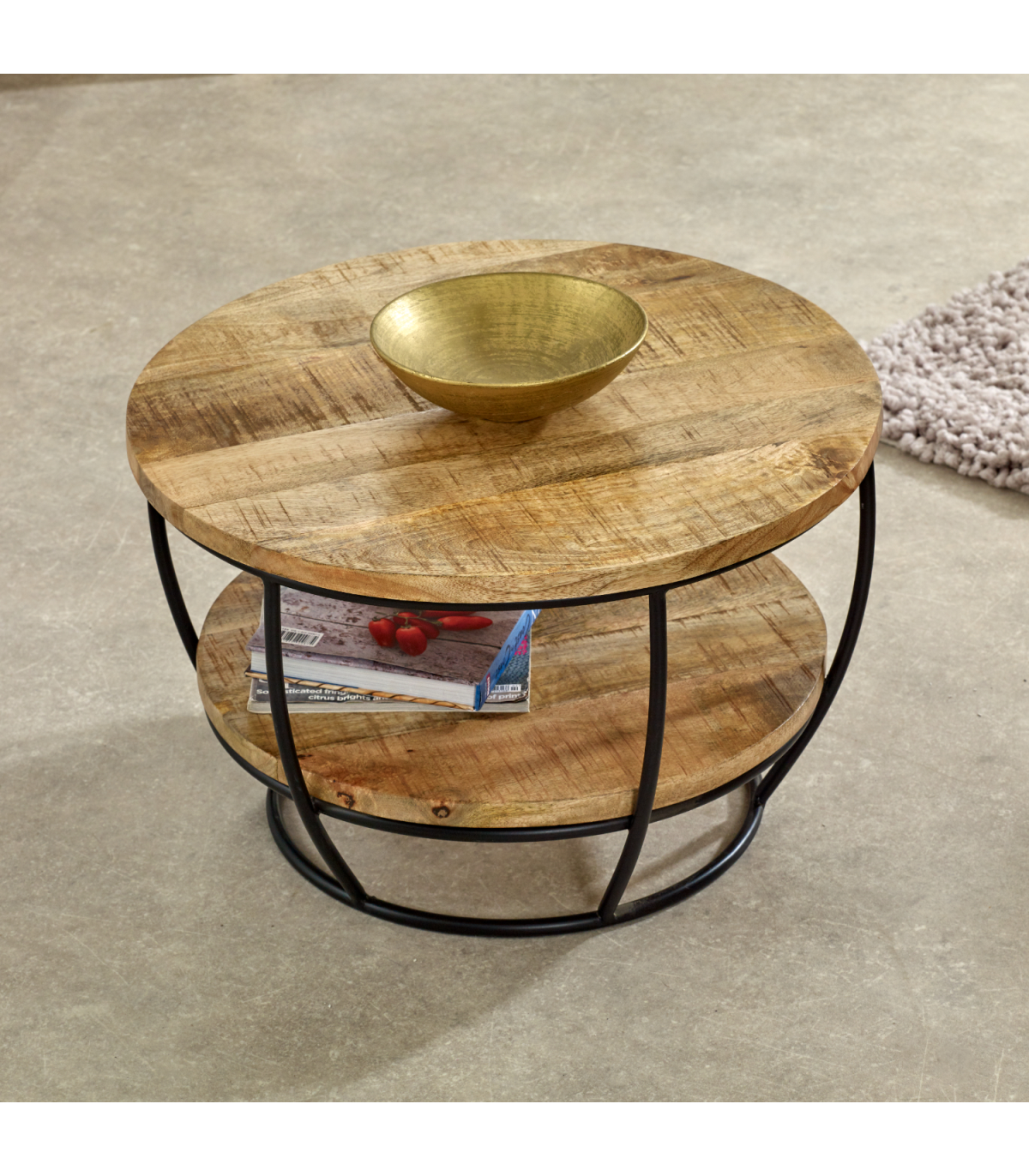 A good sized coffee table with integral lower shelf for magazines, newspapers or books. Using solid mango wood, the beauty of this natural finish is complimented by black metal supports making it extremely sturdy and stable. This table will be sure to stand out whilst adding a touch of beauty and warmth to your home and will be ideal to display a large houseplant or flowers as a focal point. Handmade entirely using 100% Eco sourced solid natural wood by skilled craftsmen in India.