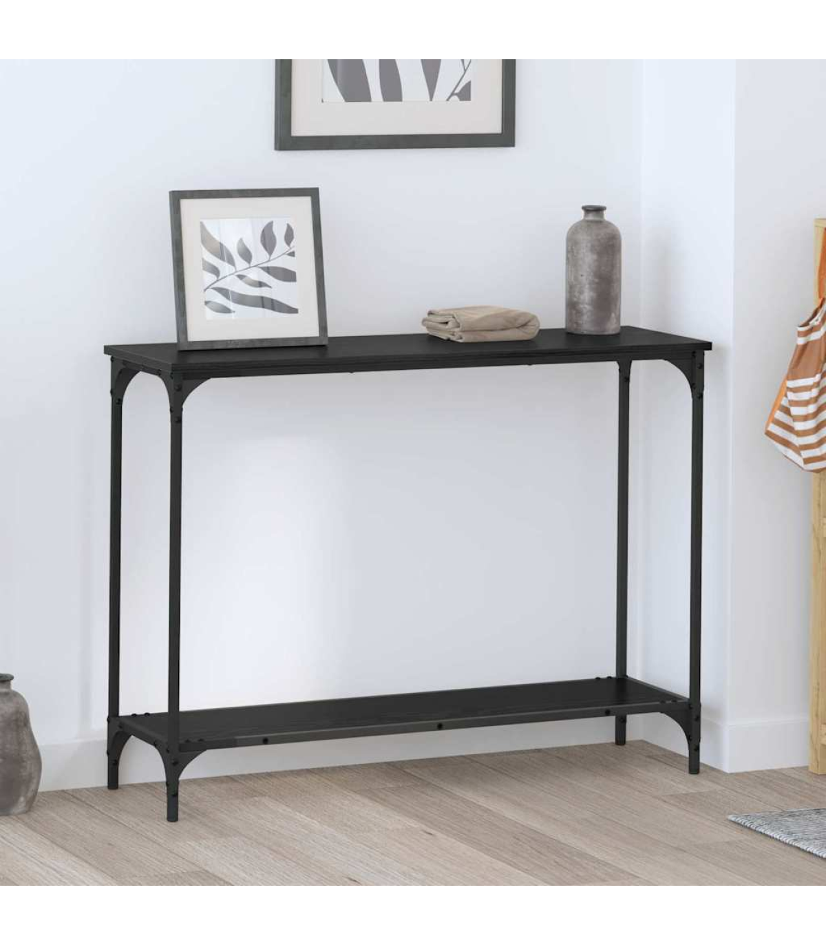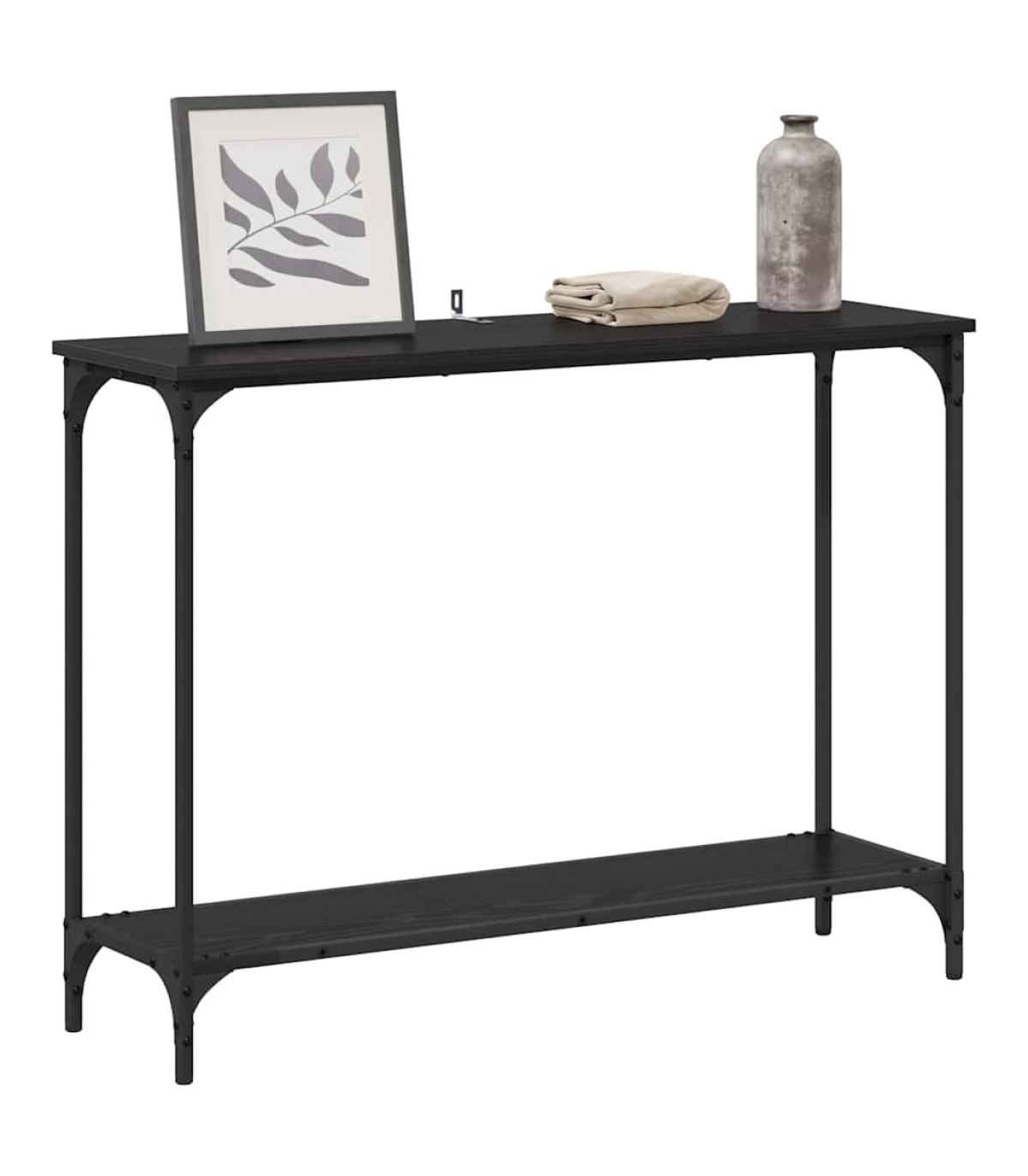 This Industrial Console Table blends sleek design with practicality, making it a cracking choice for modern living. With its sturdy industrial vibe, this narrow table adds a cool touch to your living room or hallway. The clean lines and all-black finish make it versatile, standing out for displays or storage in any snug spot. Perfect for flats or chic homes, its mix of materials and simple style makes it a classic pick. Materials: Made from sturdy engineered wood, this table's built to last. The smooth surface looks smart and is easy to wipe clean. It's paired with a steel frame that brings together style and strength, giving solid support for all your decorative bits. Included Components: The console table comes with solid shelves that give you loads of storage. They’re perfect for your books, vases, or art pieces, adding a stylish touch. The frame’s powder-coated finish makes it tough against wear and tear, helping your table last longer. Features / Function / Design: Adjustable feet make it ideal for dodgy floors and keep it sturdy. The sleek rectangular shape and smooth matte finish fit right in with minimalist or industrial decor. The table’s ability to serve multiple purposes makes it a brilliant addition to any room layout. Recommended Uses: Great for living rooms or hallways, its space-saving design gives you room without losing style. It’s fab for showcasing your creativity or for catching keys and other essentials as you come and go, adding some convenience to your decor. Care & Maintenance: Keeping it in tip-top shape is a breeze—just wipe it down with a damp cloth. The engineered wood surface can handle everyday life while keeping its stylish look intact.