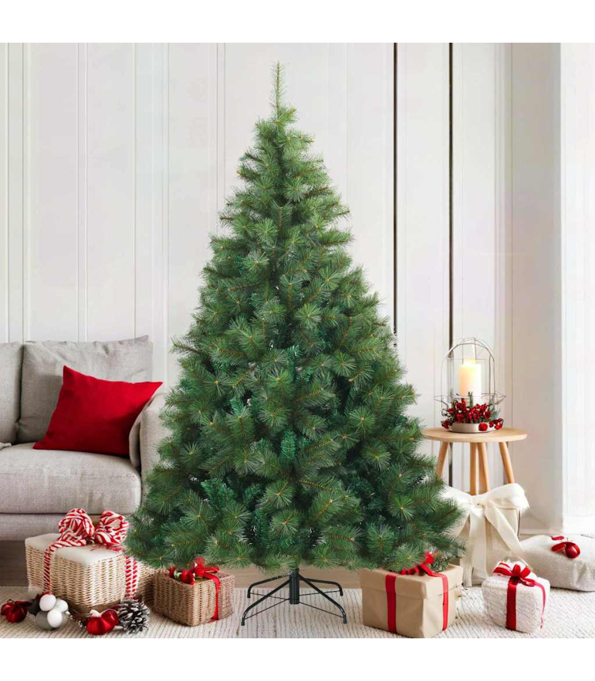 This Modern Artificial Hinged Christmas Tree is a quintessential piece of seasonal decor that blends style with simplicity. Featuring PVC branches and an iron stand, it presents a sleek, minimal look, perfect for those who appreciate modern aesthetics. Designed for indoor and sheltered outdoor settings, it offers a delightful ambiance for Christmas festivities. Material Composition: The tree branches are crafted from premium PVC material, providing a realistic appearance that enhances the festive spirit of any room. The inclusion of PVC also ensures the branches retain their shape and color over the holiday season. Secured Stability: The tree includes a robust, foldable iron stand designed for stability and support. This stand ensures easy setup and dismantling, making it easy to store and maintain. Easy Assembly: With the hinged branch design, setting up this tree is straightforward and quick. Each branch automatically shifts into place during assembly, minimizing setup time and effort. Style &Elegance: Reflecting a modern style, this tree has clean lines and minimal ornamentation. It fits seamlessly into contemporary home decorations, offering a chic and festive look. Care Instructions: Assemble the tree according to the manufacturer's instructions. This ensures all components are securely in place, promoting long-term use and durability.