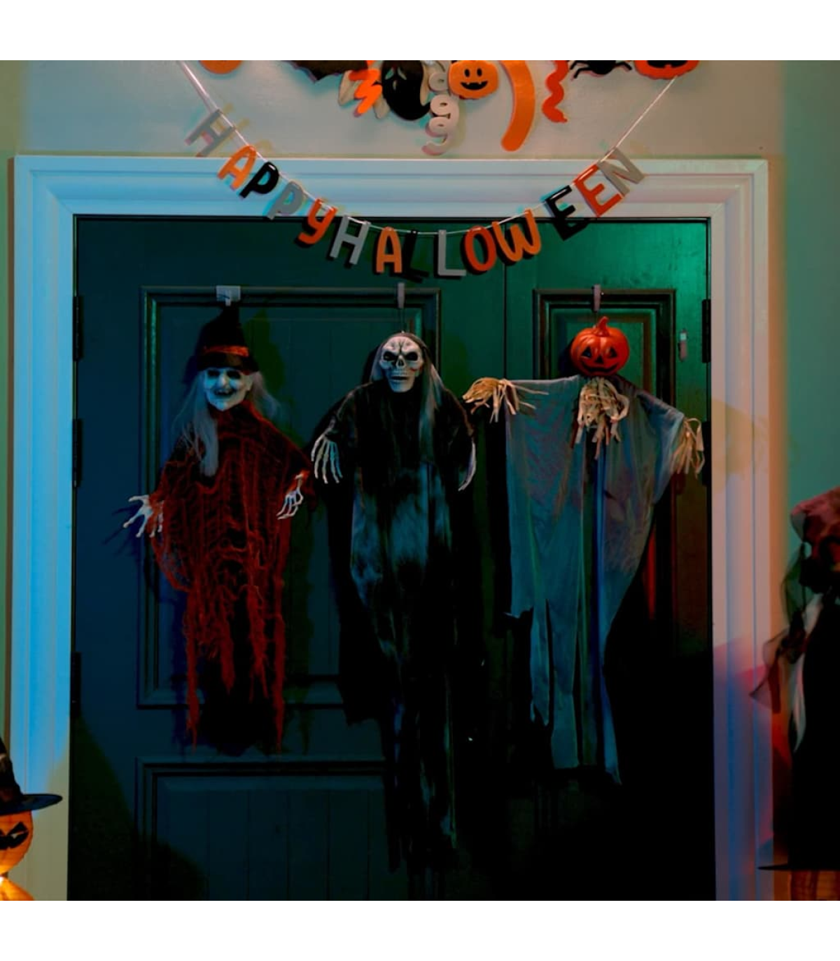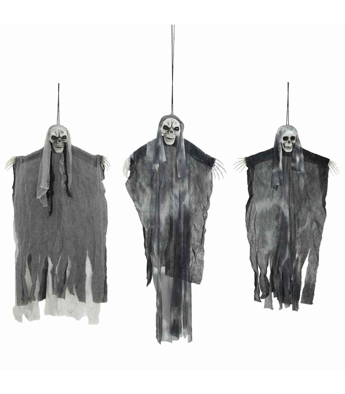 This Gothic Halloween decoration will turn any room into a spooky haven for all you Halloween lovers out there! With three hanging ghosts made from polyester, these decorations bring that haunting medieval gothic vibe. They’re perfect for indoors, hanging eerily from ceilings or doorways, making your place feel atmospheric and chilling. With their dark look, these ghostly figures give off spooky vibes that’ll mesmerise anyone who sees them, drawing them into a supernatural world. Their detailed design takes you straight to a haunted castle, mixing a bit of whimsy and fright for all the Halloween fans when the witching hour rolls around. Durable Polyester Fabric: These hanging ghost decorations are made from tough polyester, known for being lightweight and long-lasting, making them spot on for seasonal displays. The fabric hangs nicely, keeping its spooky look for multiple Halloweens, ensuring you get noticed during ghostly gatherings. Adjustable Arms: With a manual mechanism, you can easily change the poses of the ghosts’ arms without any tools. This lets you get creative with either a frightful arrangement or a fun, floating ghost setup. Gothic Halloween Style: These ghosts come in a gothic design with dark colours and medieval patterns, giving off an intriguing and mysterious vibe. Their craft creates an atmosphere reminiscent of creepy manors, blending horror with elegance perfectly for your Halloween get-togethers. Versatile Display Options: Designed for indoor use only, these ghosts can liven up your living room or entryway right from the get-go. They work great as the centrepiece for Halloween parties or as a subtle spooky touch to your everyday décor. Care & Maintenance: To keep them looking good for next time, avoid dampness and harsh weather. Keep them away from fires and store them in a cool, dry spot between uses. This way, each Halloween, these spirits are ready to impress and scare guests.