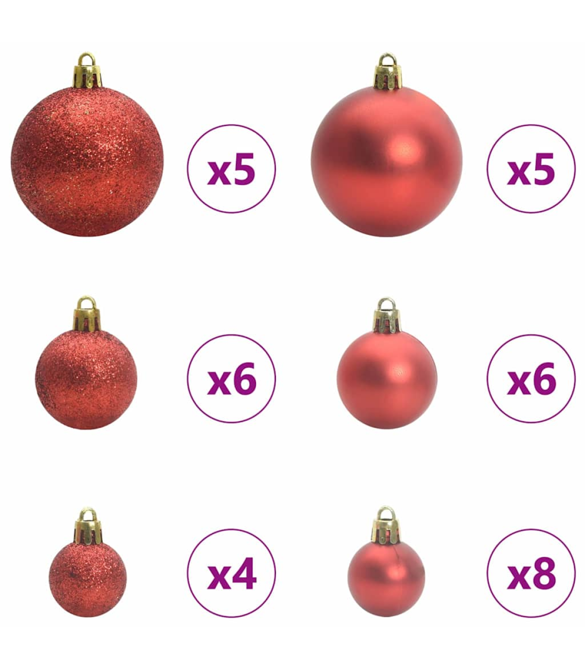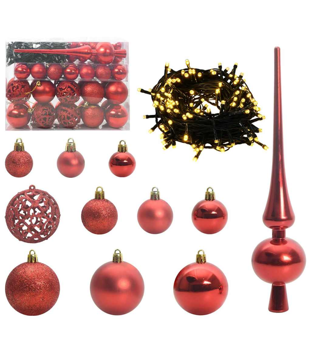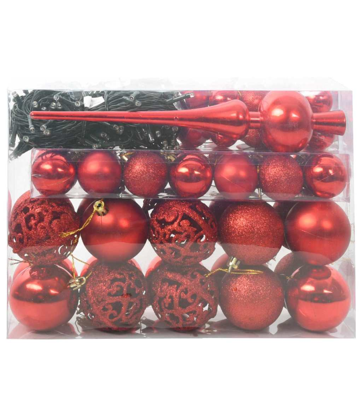vidaXL Christmas Bauble Set with 150 LEDs 61 pcs Red Plastic