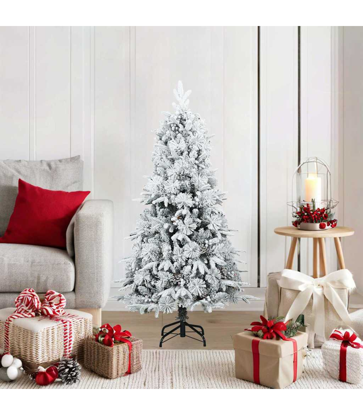 This Modern Artificial Christmas Tree transforms any living room or garden space into a festive wonderland. With its clean lines and minimal ornamentation, it challenges traditional Christmas decoration norms by providing a sleek, simplified aesthetic. Suitable for both indoor and outdoor settings, this tree radiates modern charm while providing the perfect backdrop for your festive ornaments. Its adaptable design not only serves as a centerpiece for holiday cheer but also harmonizes with a variety of décor styles, making it a delightful addition to any setting. PVC Material: This artificial Christmas tree is crafted from high-quality PVC, providing a realistic appearance that captures the essence of Christmas. The PVC material ensures durability and longevity, resisting wear and tear to keep the tree looking fresh year after year. Enjoy a maintenance-free festive season, as the PVC foliage requires no watering or upkeep. Hinged Branches: Equipped with hinged branches, this tree simplifies assembly with a convenient design that effortlessly unfolds. The articulation of branches makes adjusting for fullness easy, allowing you to shape each branch to your liking for a lush and elegant display. Experience the joy of seamless setup without the complication of individual branch insertion. Decorative Features: Built primarily for ornamental purposes, this tree gives ample room for you to express your decorative flair. Adorn it with lights, baubles, and garlands, enhancing every festive moment. Its adaptability to different themes ensures it can evolve with your décor preferences, from traditional to modern. Indoor and Outdoor Versatility: Perfect for both cozy living rooms and inviting garden terraces, this tree is crafted to withstand various environments. Whether entrenching oneself in the comfort of your home or expanding the festive cheer to include outdoor gatherings, its utility remains uncompromised. Adjust your setting as needed without sacrificing style. Easy Assembly and Care: With provided instructions, assembly is simplified and requires two people for fastened setup. Disassemble post-season for compact storage, preserving the tree for future celebrations. Easy to maintain, ensuring each holiday retains freshness and vibrancy.