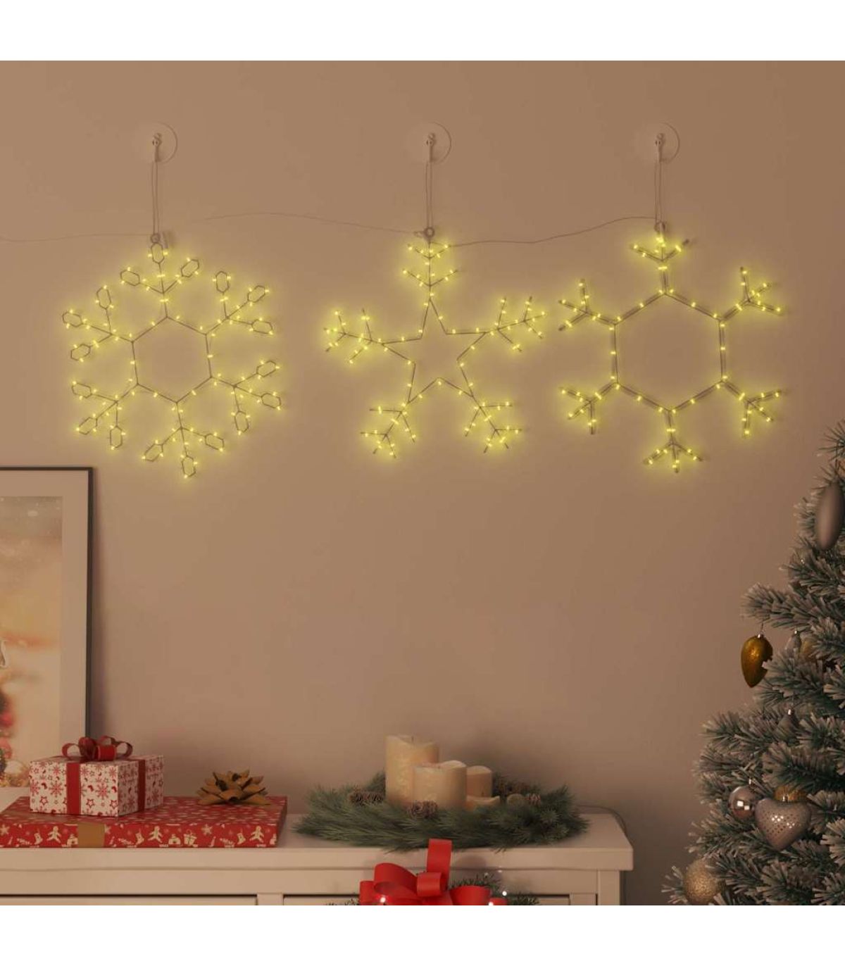 This Lighted Christmas Snowflake is the perfect festive touch, serving both looks and lighting. Its timeless star shape mixes well with any holiday vibe, shining softly with its LED lights. Use it indoors to brighten up your home, or place it outside as a friendly welcome for guests—it's versatile and easy to use. Ideal for those who love a classic, the smooth and clear texture adds a classy flair to any décor. At 45 by 38 cm, it's the right size to make a statement without taking over your space. This gem is perfect for anyone wanting to embrace the spirit of Christmas and create a cozy, inviting atmosphere. The warm white glow brightens up the place, spreading joy and setting the scene for festive fun. u003culu003eu003cliu003eu003cbu003eMaterials:u003c/bu003e Made from high-quality PVC, the Lighted Christmas Snowflake is tough and UV resistant. It won’t fade or wear out from the sun, making it a great choice for both indoors and outdoors, especially in those harsh winter months. This durability means it’ll light up your holiday decor for many seasons to come, giving you good value for your money.u003c/liu003eu003cliu003eu003cbu003eIncluded Components:u003c/bu003e Comes with a universal adapter for an easy setup, working well in various regions. The rope lights are carefully shaped to look like a star, giving it that signature look. Everything fits together perfectly, whether you hang it in your living room or on your porch.u003c/liu003eu003cliu003eu003cbu003eFeatures / Function / Design:u003c/bu003e Its traditional look captures the timeless holiday spirit with its lovely star shape. The decorative details make it a stylish piece in any holiday display. Plus, the LED lights are energy-efficient yet bright enough to charm your guests and family.u003c/liu003eu003cliu003eu003cbu003eRecommended Uses:u003c/bu003e Great for creating a festive vibe in homes or businesses during the holiday season. You can hang it in windows, over doorways, or in outdoor spots like gardens or patios. Its warm light is perfect for greeting guests at your festive gatherings.u003c/liu003eu003cliu003eu003cbu003eCare u0026 Maintenance:u003c/bu003e To keep it looking great, avoid using it in wet conditions and don’t submerge it in water. A bit of care helps it stay lovely year after year, offering you low maintenance and hassle-free holiday decor. Just pop it in a dry spot when the season's over to keep it safe for next time.u003c/liu003eu003c/ulu003e