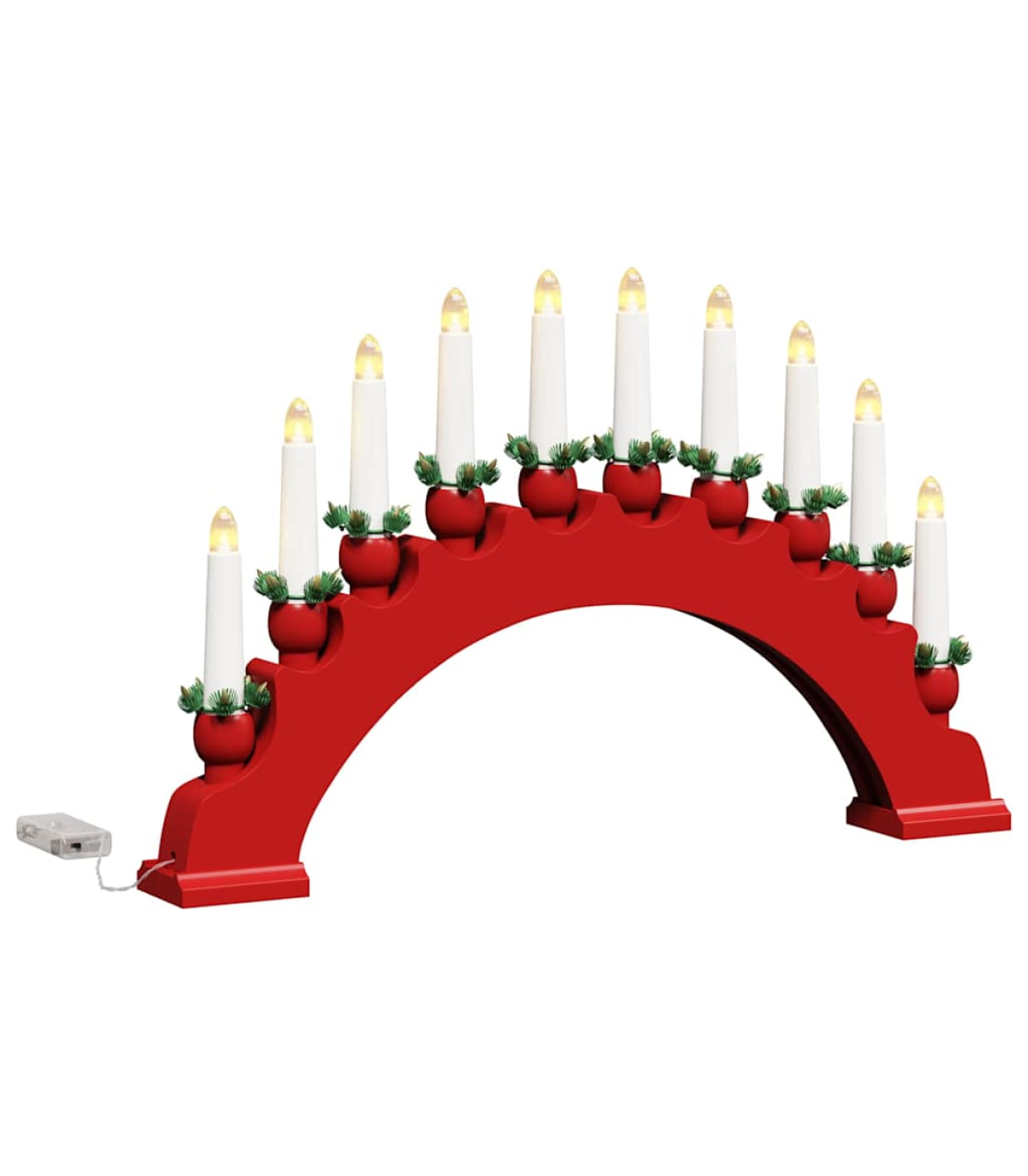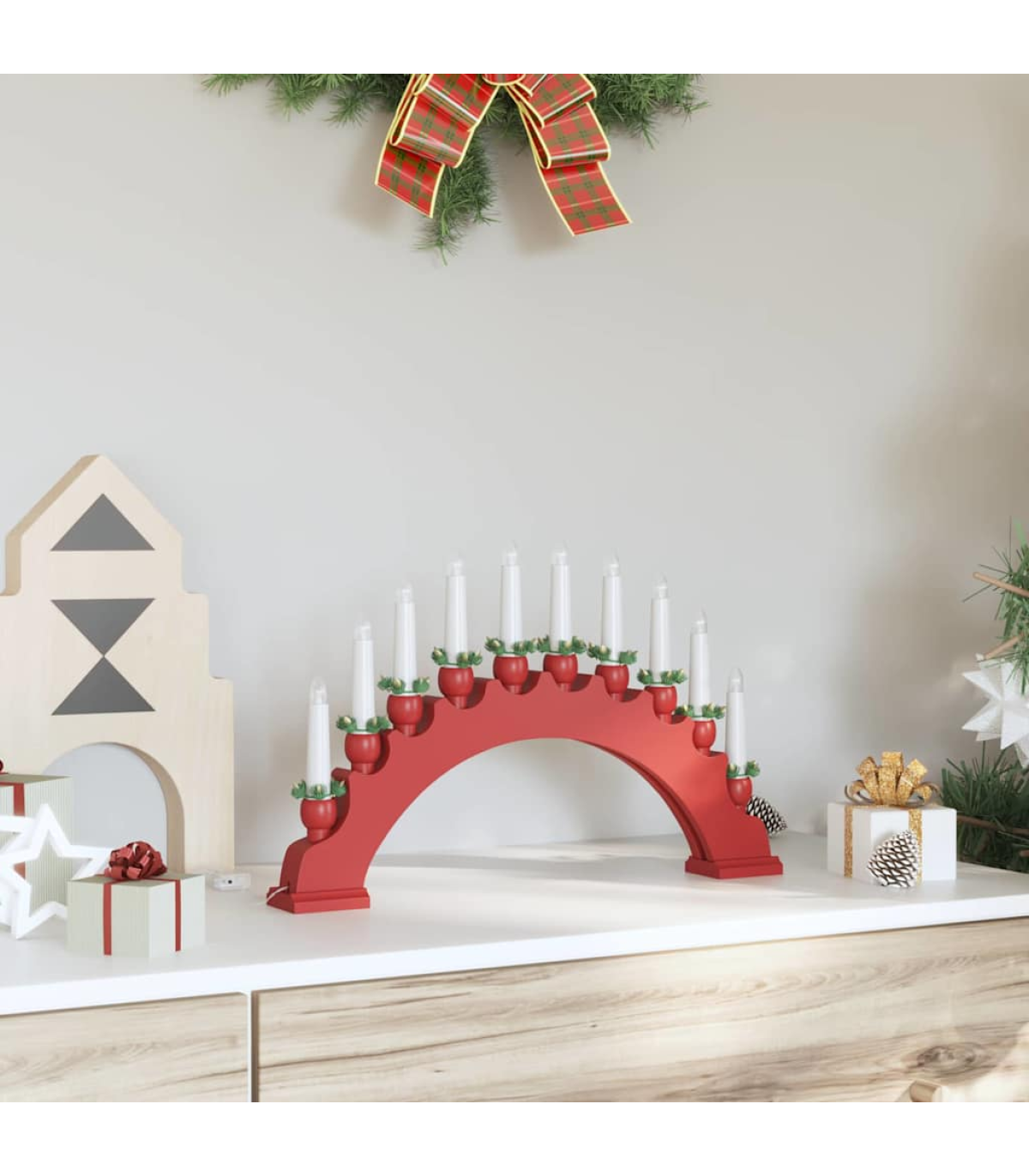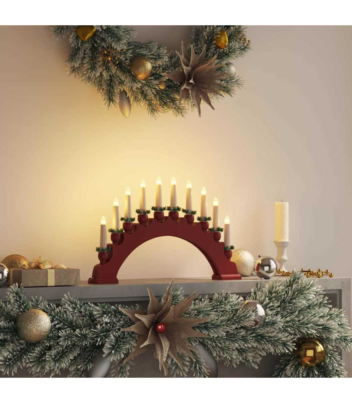 The Christmas Candle Arch with 10 LED Candles beautifully combines tradition and modernity for an enchanting holiday display. Crafted from solid pine wood, this piece embraces the festive spirit, bringing warm ambiance to any indoor space. Designed to sit gracefully on mantels and windowsills, it illuminates your room with a soft, warm white light, creating a cozy environment for family gatherings and seasonal celebrations. This exquisite decorative piece not only enhances the seasonal charm but also offers a touch of nostalgic flair, reminiscent of classic holiday decor traditions. Solid Pine Wood: The arch is crafted from solid pine wood, a material renowned for its strength and intricate grain patterns. This natural composition not only lends to the arch's aesthetic appeal but also ensures longevity, making it a timeless addition to your seasonal decor. The material evokes a warm, traditional feel, integrating seamlessly into any home's festive ensemble. Warm LED Lighting: Featuring 10 LED candles, the arch emits a cozy warm white light, perfect for creating a warm ambiance. The LED technology ensures safe, energy-efficient lighting, ideal for continuous use throughout the holiday season. Bask in the inviting glow that transforms your space into a festive haven. Wireless Operability: The candle arch operates on AA alkaline batteries, eliminating the need for unsightly wires and electrical outlets. This battery-powered feature enhances its versatility, allowing effortless placement throughout the home—from mantelpieces to center table displays—while retaining its elegance and charm. Seasonal Elegance: Designed with traditional Christmas motifs, this arch brings that iconic holiday magic into your living or dining room. Its intricate design and warm light create an inviting atmosphere, ideal for festive gatherings, creating cherished memories during the holiday season. Minimal Maintenance: Keep the candle arch in pristine condition with simple maintenance. Remove batteries when not in use and gently wipe it down with a dry cloth for lasting use, ensuring the arch remains part of your seasonal decorations year after year.