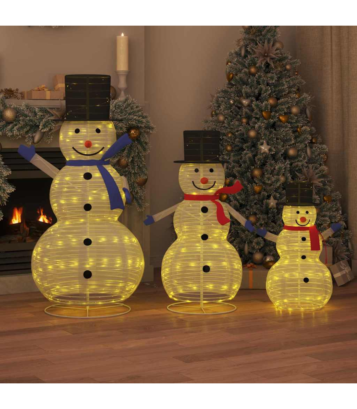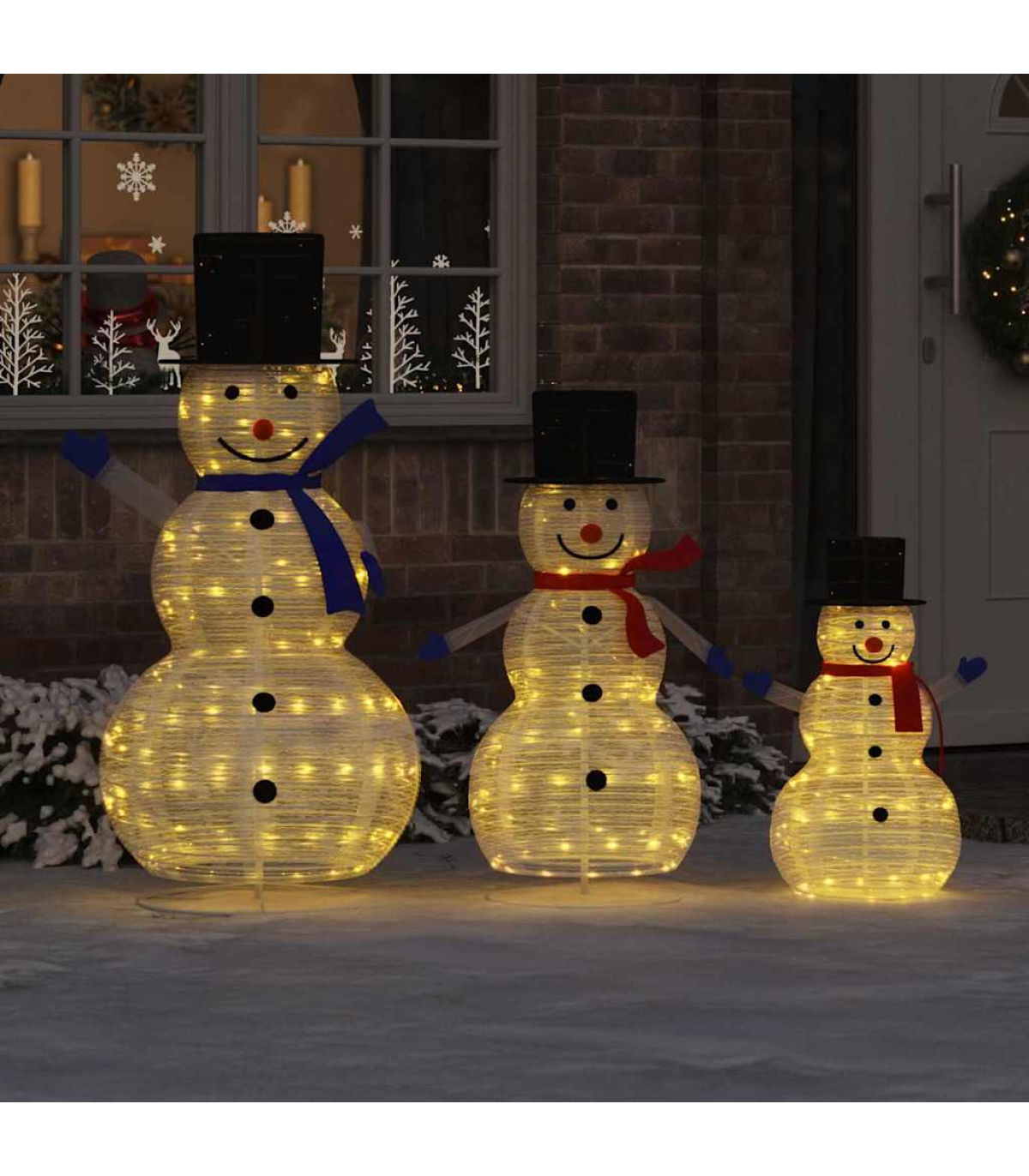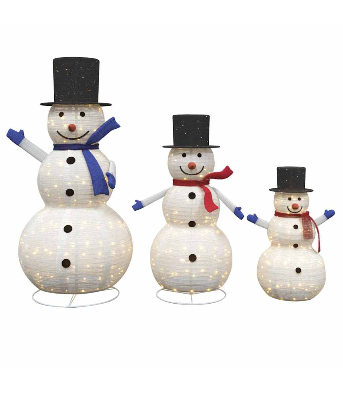 This Lighted Christmas Snowman Family will deck out your spaces with a delightful festive feel. Its traditional design radiates warmth and elegance. At a generous size of 81 x 60 x 125 cm, this lovely snowman adds character indoors and outdoors, lighting up your surroundings with a welcoming glow. The clever craftsmanship, featuring clear textures and warm lights, beautifully enhances your Christmas celebrations while setting a cozy, happy mood. Materials: Made from tough fabric, the Lighted Christmas Snowman Family is built to last and can handle any weather, making it a great choice for seasonal displays. The copper bits add extra strength and help keep its shape while boosting the design's looks. Included Components: With LED rope lights woven into the snowman's curves, you're guaranteed stunning visuals. A pair of scissors is required for assembly, but its lightweight build makes it easy to set up. Plus, the USB-powered lights mean you won’t have to deal with complicated connections. Features / Function / Design: This decor piece shines with traditional touches and gorgeous detailing, showcasing classic Christmas themes with a friendly vibe. The bendy rope lights blend effortlessly into any festive theme. Recommended Uses: Perfect for living rooms, gardens, and terraces, this snowman family can turn any ordinary space into a magical wonderland—ideal for family gatherings and holiday fun. It adapts well to both cozy indoor areas and spacious outdoor spots. Care & Maintenance: To keep it looking its best, simply wipe it down with a dry cloth and steer clear of harsh chemicals that might damage the surface. If it's used outside, throwing a cover over it during rough weather is a good idea.