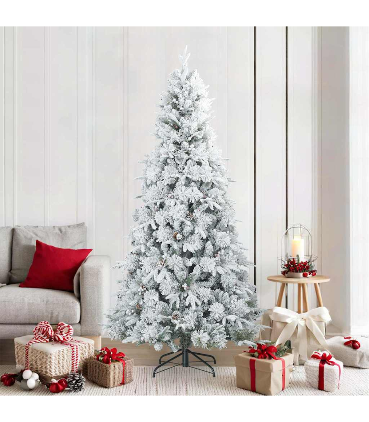 The Modern Artificial Hinged Christmas Tree brings festive cheer to any home or outdoor space. Designed with simplicity and functionality in mind, it features a clean, minimalist aesthetic while ensuring durability and ease of use. This seasonal décor piece is ideal for adorning living rooms, gardens, and terraces, adding a touch of luxury with lifelike tips and vibrant decorative elements. Its versatile appearance makes it a fitting centerpiece during the holiday season, radiating warmth and celebration spirit. Decorative Elements: This Christmas tree comes beautifully adorned with pine corns and bright red berries that add a festive and natural touch. The thoughtfully placed decorations maintain a harmonious balance, offering a cohesive and stylish holiday theme. These elements also offer visual depth, enhancing the overall appearance whether placed indoors or in a covered outdoor area. Realistic Design: Crafted with lifelike tips, the tree mimics the natural texture of actual foliage, bringing authenticity to its appearance. The detailed design not only makes this tree a focal point of holiday décor but also creates an inviting atmosphere that resembles a real pine, ensuring the seasonal magic comes to life in your home. Easy Setup: Equipped with hinged branches, the tree ensures a straightforward assembly process, saving valuable time and energy during the busy festive season. This intuitive design makes putting up and taking down the tree a hassle-free task, allowing you to easily enjoy the holiday cheer without unnecessary fuss or time-consuming struggles. Stable Base: The tree sits securely on a foldable metal stand, providing excellent stability and support. The durable stand assures it remains in place, preventing wobbling or sagging, thus presenting a neat and organized holiday display. Its foldable feature also allows for practical storage post-holidays, adding to ease of use and convenience. User Instructions: To achieve a fuller and more vibrant tree, users are recommended to allocate 30-45 minutes for shaping its branches. Following the included instructions aids in achieving optimal aesthetics. Additionally, assembling requires two individuals and a screwdriver, accommodating a collaborative holiday setup experience.