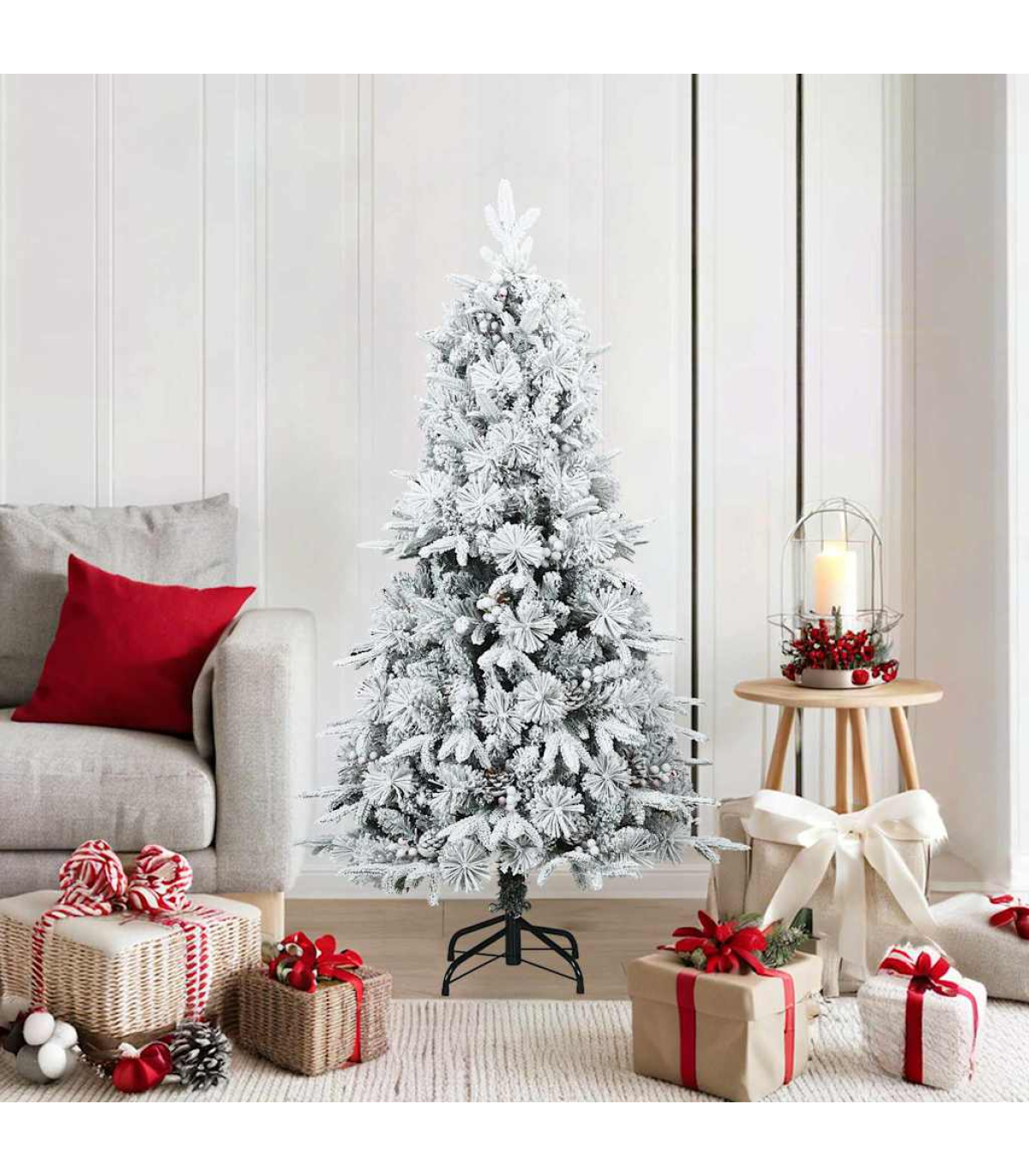 vidaXL Artificial Hinged Christmas Tree Snow Flocked White 150 cm