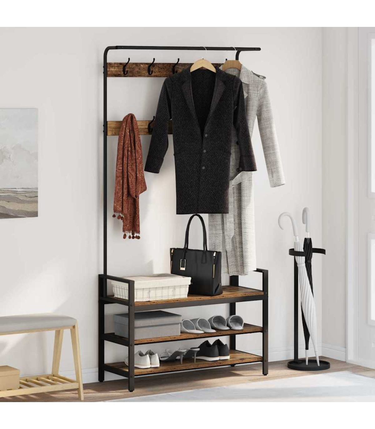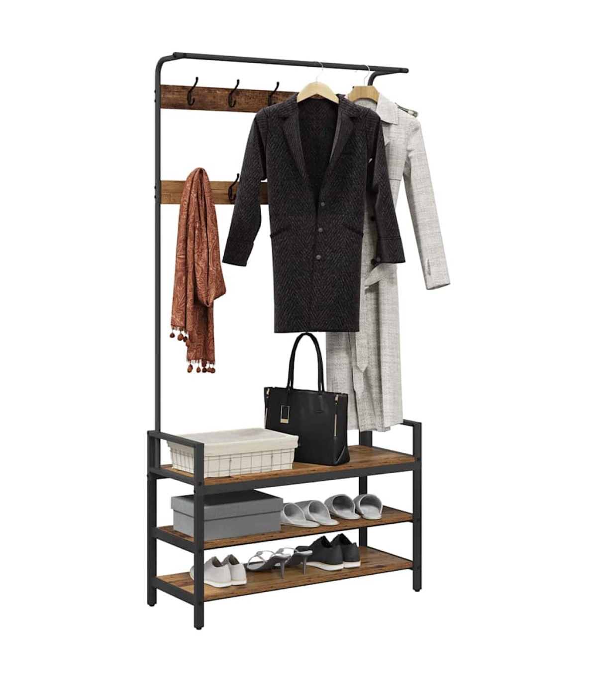 This Modern Coat Rack with Storage blends function and style, making it a must-have for any living room. With a sleek rectangular design and smooth finish, it’s a practical yet stylish addition to your home. It helps you stay organised, perfect for families or anyone who values space and efficiency, with loads of storage across its various levels and compartments. The smart black frame and metal legs give it a minimalist vibe that fits right in with modern decor. Materials: Made from engineered wood and steel, this coat rack is tough and stylish, built to handle everyday use without sacrificing looks. The materials are chosen for their strength, ensuring reliability and a chic finish that matches different modern interiors. Included Components: Comes with board shelves made from engineered wood, providing plenty of space for coats, shoes, and other personal stuff. Its solid metal frame means the shelves can support heavier items without wobbling, keeping your things safe. Features / Function / Design: With a square-leg design, this coat rack isn’t just trendy; it’s super functional too. The roomy shelves cater to a variety of storage needs, making it a practical choice for your home. Recommended Uses: Brilliant for hallways, living rooms, or bedrooms, this coat rack is perfect for sorting out your daily essentials. It’s easy to put together and turns messy spots into tidy areas, great for professionals, families, or minimalists looking to optimise their space. Care & Maintenance: Keeping the coat rack looking good is a doddle; just wipe it with a damp cloth to remove dust or marks. This easy maintenance keeps it looking sharp while providing lasting functionality and style in your home.