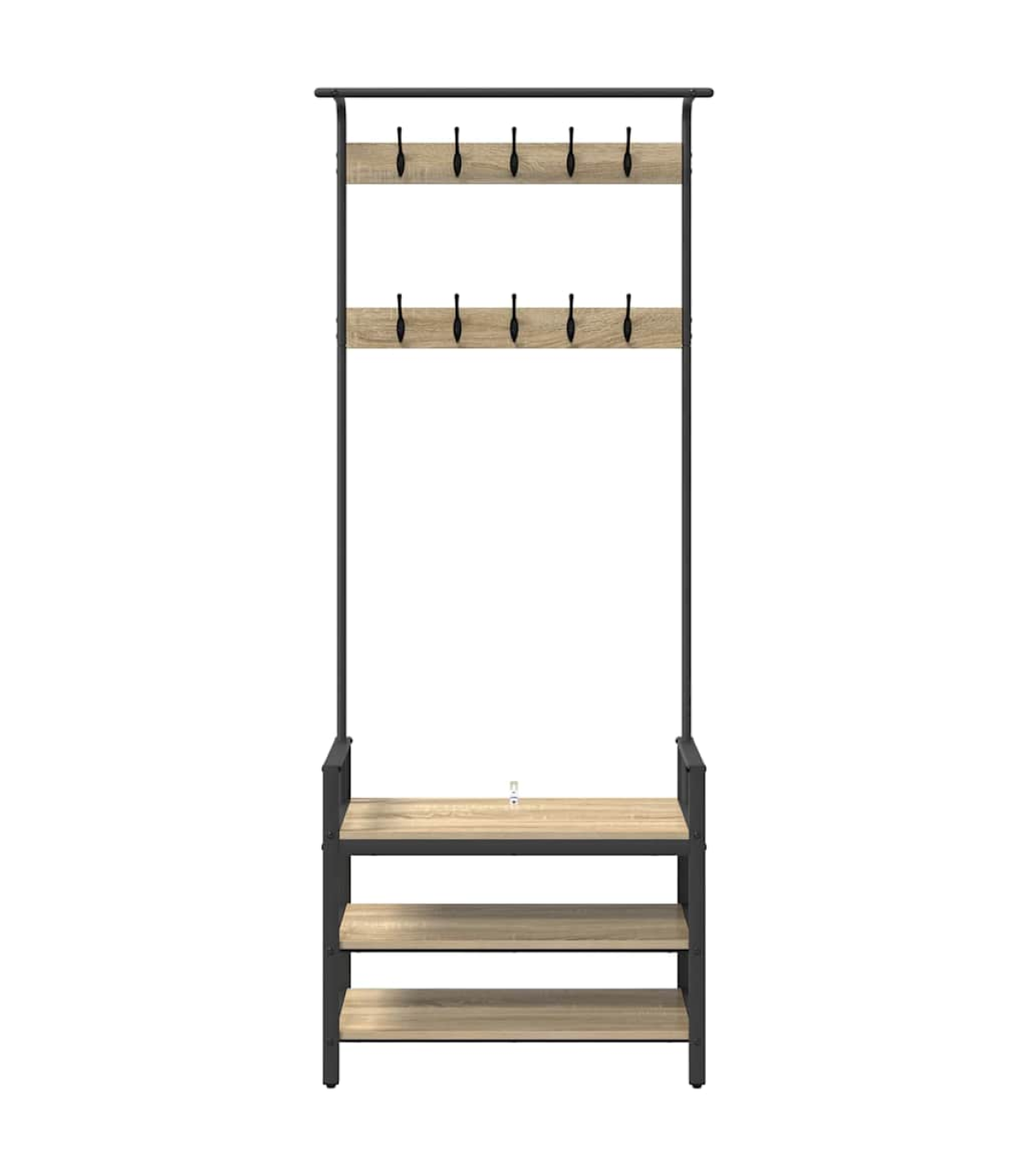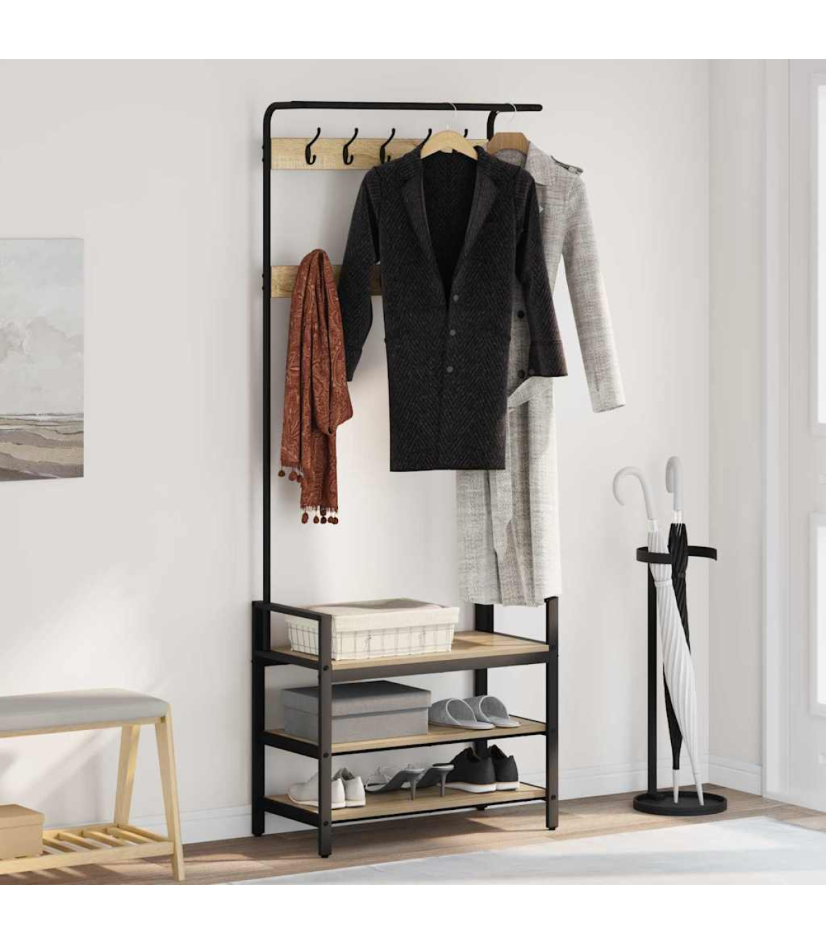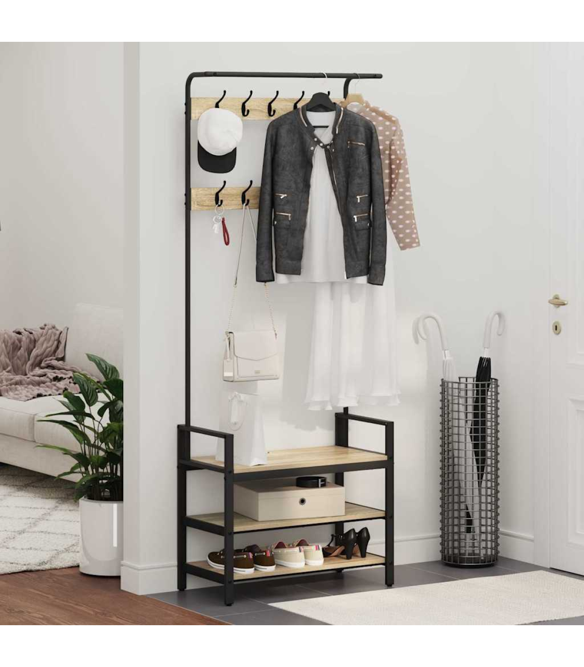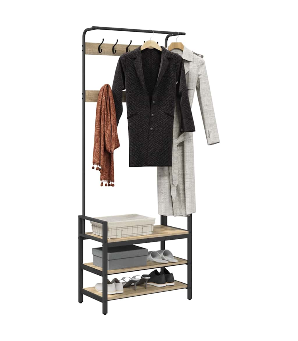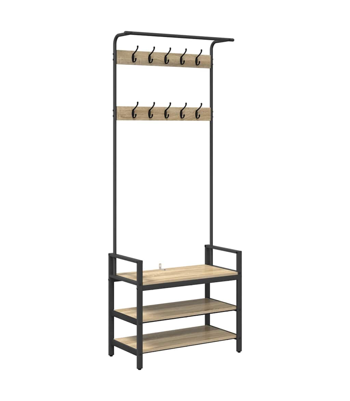 This Modern Coat Rack with Storage blends function and style, making it a must-have for any living room. With a sleek rectangular design and smooth finish, it’s a practical yet stylish addition to your home. It helps you stay organised, perfect for families or anyone who values space and efficiency, with loads of storage across its various levels and compartments. The smart black frame and metal legs give it a minimalist vibe that fits right in with modern decor. Materials: Made from engineered wood and steel, this coat rack is tough and stylish, built to handle everyday use without sacrificing looks. The materials are chosen for their strength, ensuring reliability and a chic finish that matches different modern interiors. Included Components: Comes with board shelves made from engineered wood, providing plenty of space for coats, shoes, and other personal stuff. Its solid metal frame means the shelves can support heavier items without wobbling, keeping your things safe. Features / Function / Design: With a square-leg design, this coat rack isn’t just trendy; it’s super functional too. The roomy shelves cater to a variety of storage needs, making it a practical choice for your home. Recommended Uses: Brilliant for hallways, living rooms, or bedrooms, this coat rack is perfect for sorting out your daily essentials. It’s easy to put together and turns messy spots into tidy areas, great for professionals, families, or minimalists looking to optimise their space. Care & Maintenance: Keeping the coat rack looking good is a doddle; just wipe it with a damp cloth to remove dust or marks. This easy maintenance keeps it looking sharp while providing lasting functionality and style in your home.