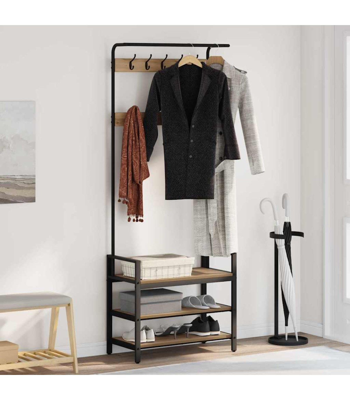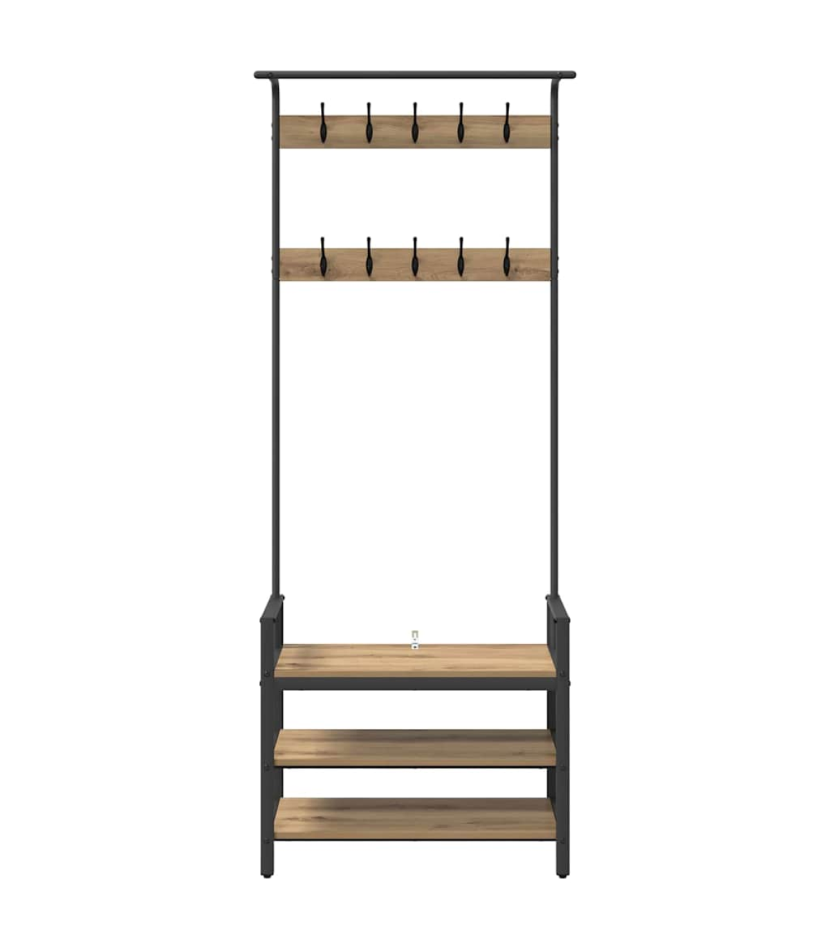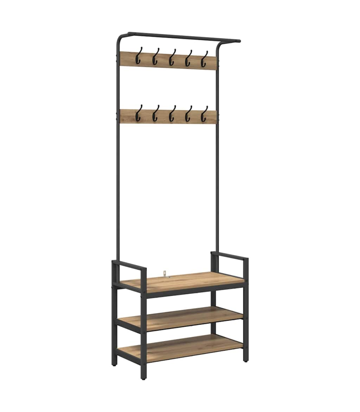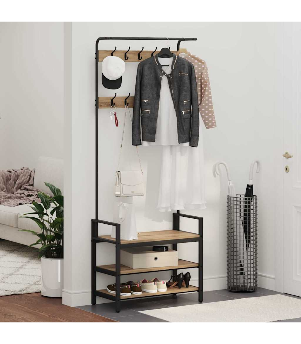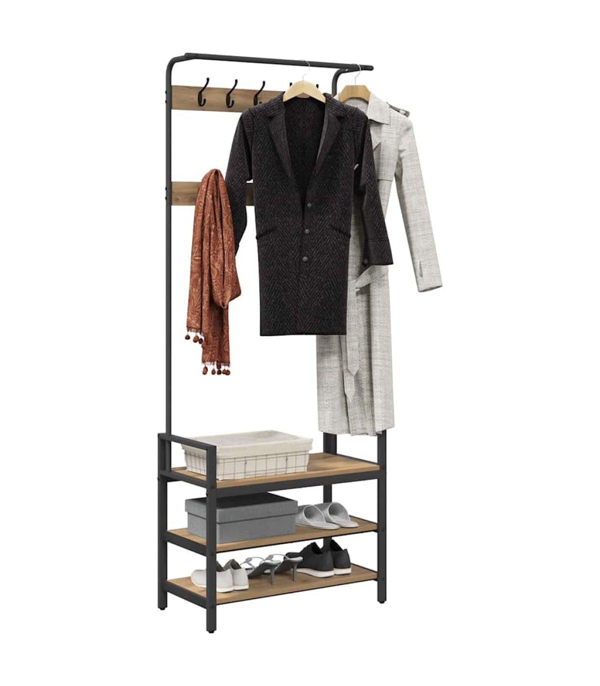 This Modern Coat Rack with Storage blends function and style, making it a must-have for any living room. With a sleek rectangular design and smooth finish, it’s a practical yet stylish addition to your home. It helps you stay organised, perfect for families or anyone who values space and efficiency, with loads of storage across its various levels and compartments. The smart black frame and metal legs give it a minimalist vibe that fits right in with modern decor. Materials: Made from engineered wood and steel, this coat rack is tough and stylish, built to handle everyday use without sacrificing looks. The materials are chosen for their strength, ensuring reliability and a chic finish that matches different modern interiors. Included Components: Comes with board shelves made from engineered wood, providing plenty of space for coats, shoes, and other personal stuff. Its solid metal frame means the shelves can support heavier items without wobbling, keeping your things safe. Features / Function / Design: With a square-leg design, this coat rack isn’t just trendy; it’s super functional too. The roomy shelves cater to a variety of storage needs, making it a practical choice for your home. Recommended Uses: Brilliant for hallways, living rooms, or bedrooms, this coat rack is perfect for sorting out your daily essentials. It’s easy to put together and turns messy spots into tidy areas, great for professionals, families, or minimalists looking to optimise their space. Care & Maintenance: Keeping the coat rack looking good is a doddle; just wipe it with a damp cloth to remove dust or marks. This easy maintenance keeps it looking sharp while providing lasting functionality and style in your home.