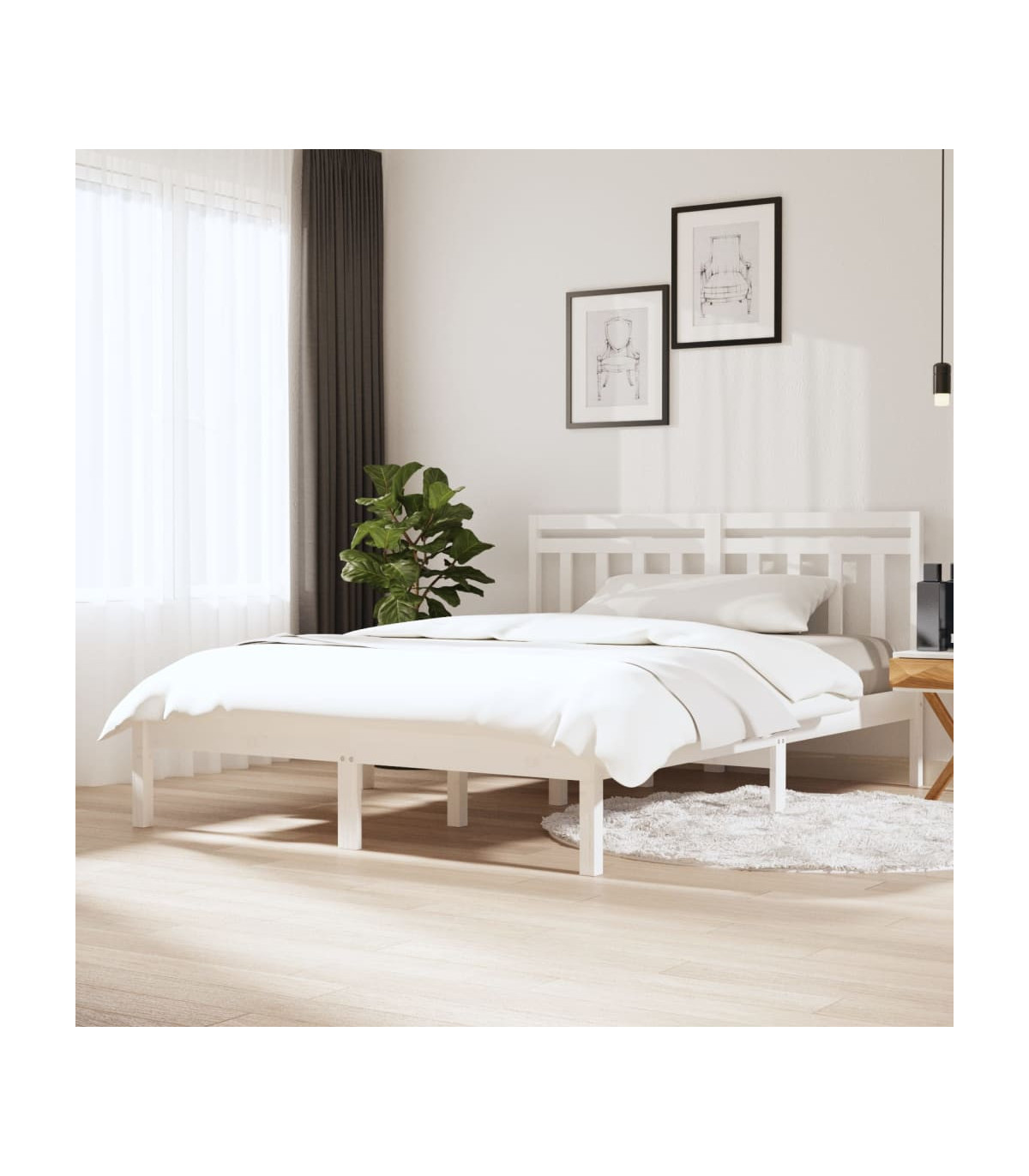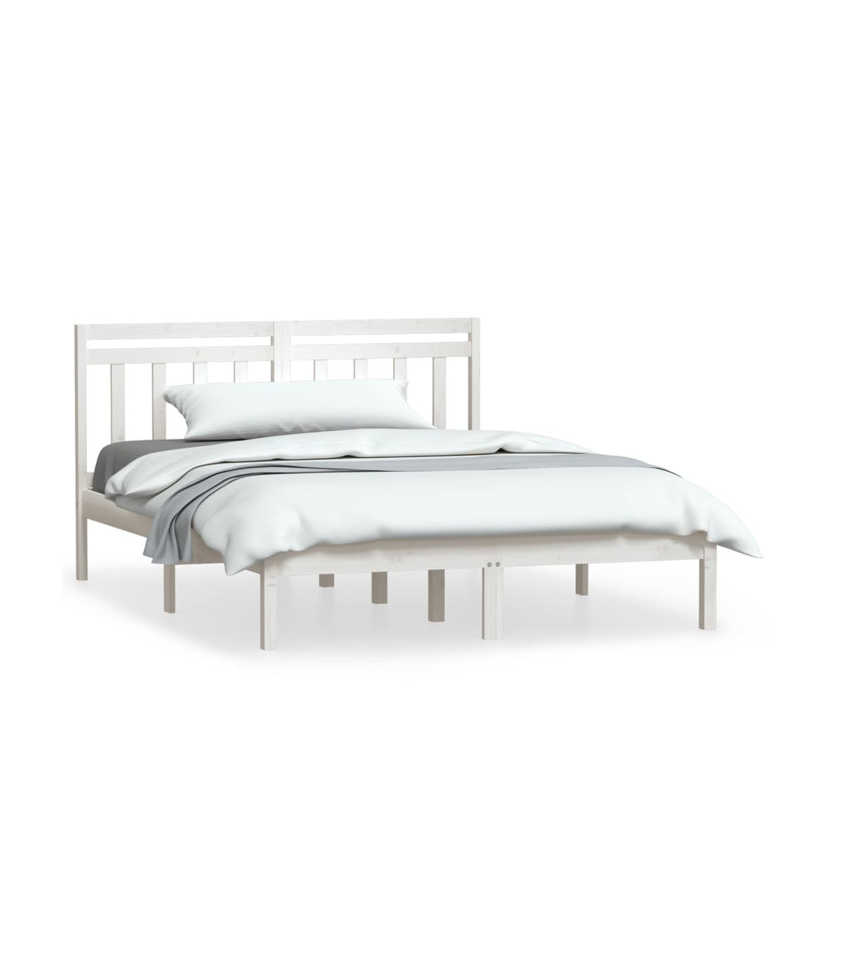 Bed Frame White Solid Wood 160x200 cm 5FT King Size