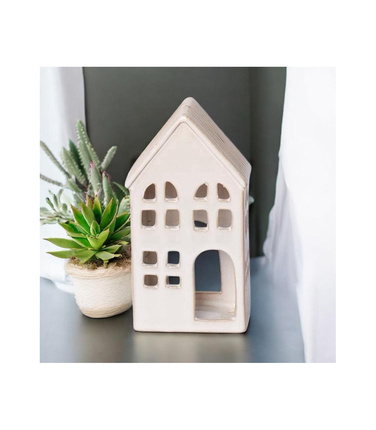 17CM CREAM CERAMIC HOUSE TEALIGHT HOLDER