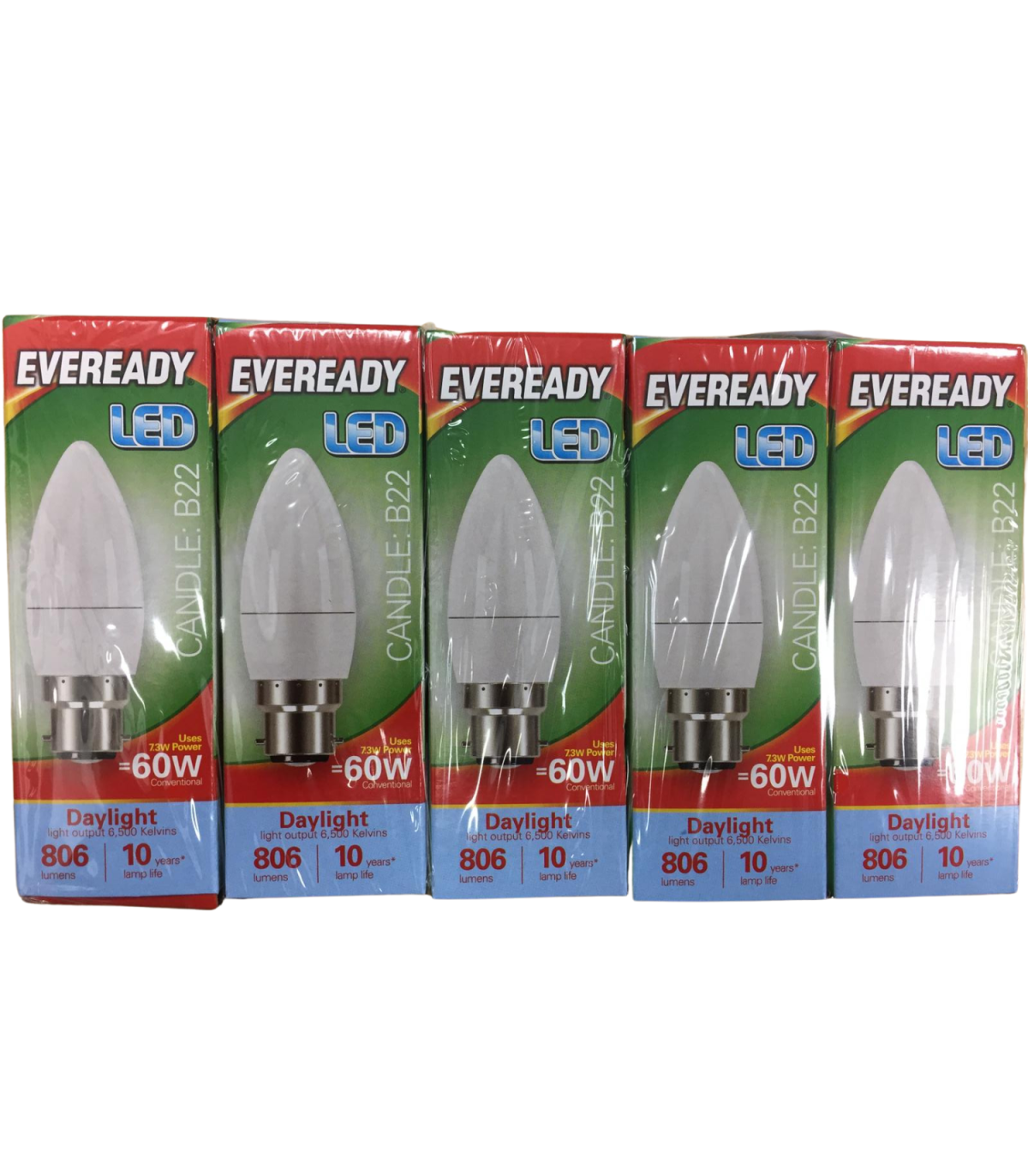 Eveready LED BC Candle Bulb 60w daylight pk of 5