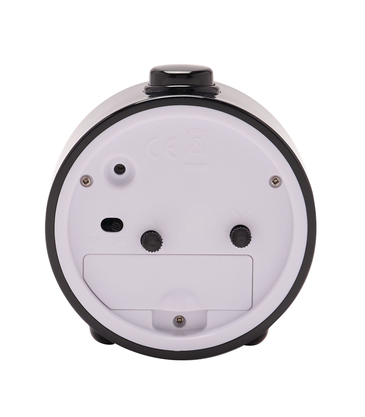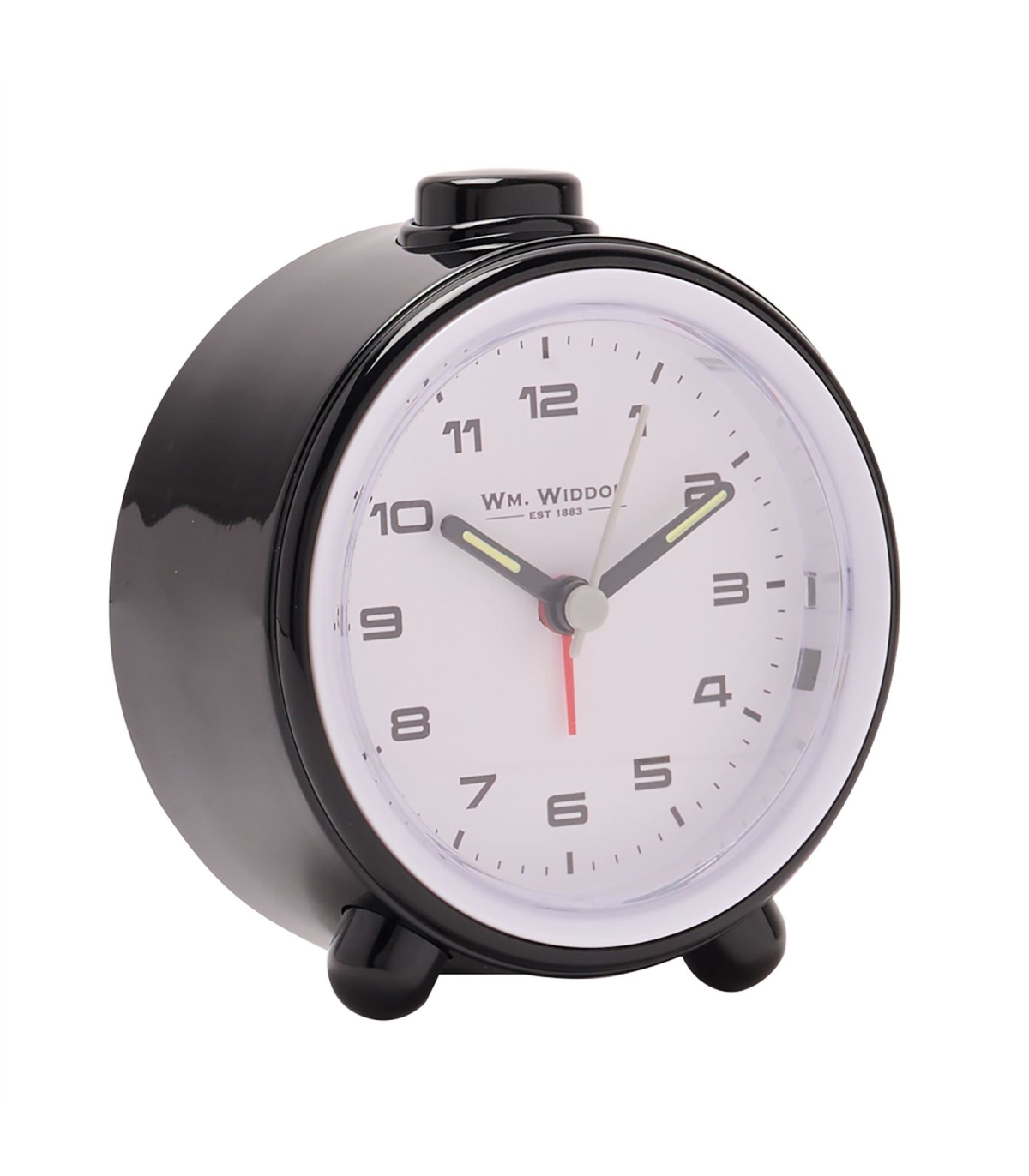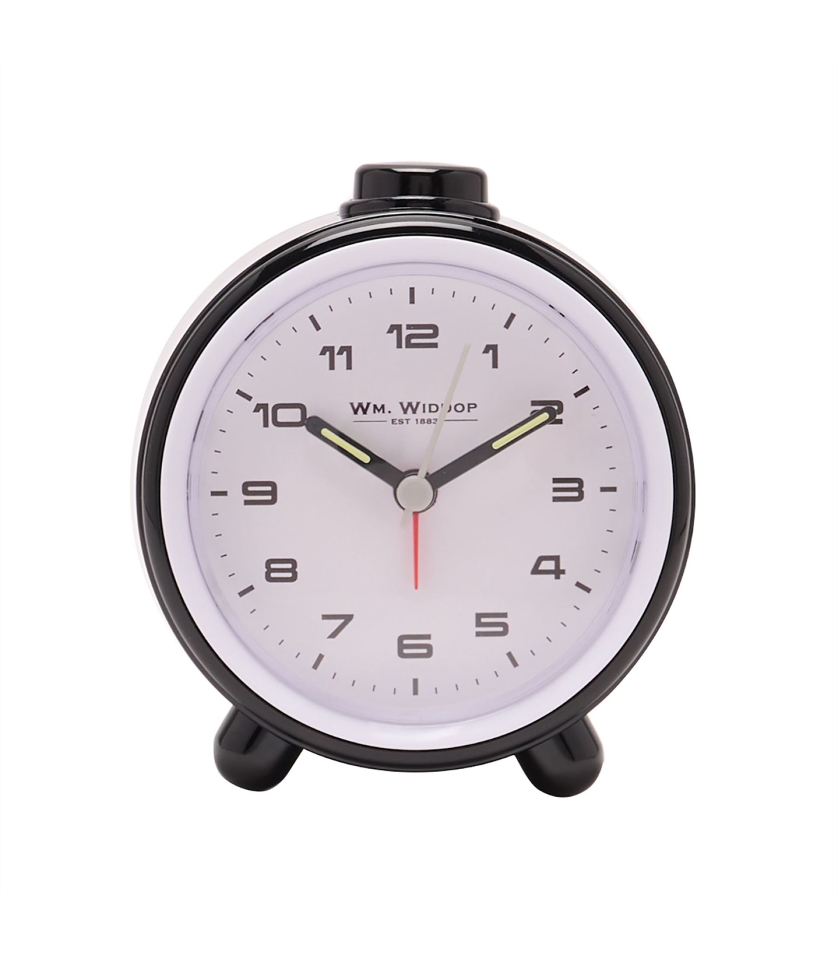 Wm.Widdop Round Alarm Clock Sweep Movement & Snooze - Black & White