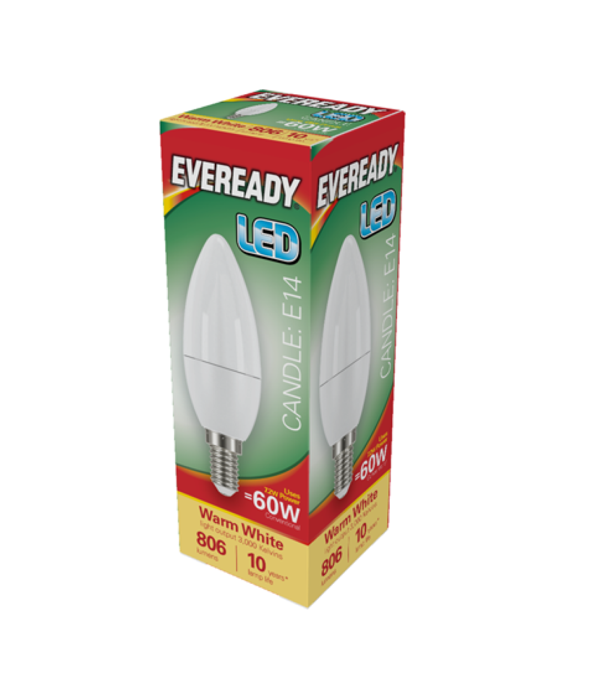 Eveready S17377 LED Candle Bulb 60w E14 (SES) 806lm 7.3W Warm White (Pack of 5) 7.3W / 60W Replacement 806 Lumen 3,000K (Warm White) Non-Dimmable 220-240V Energy Rating E