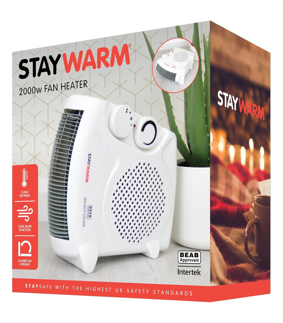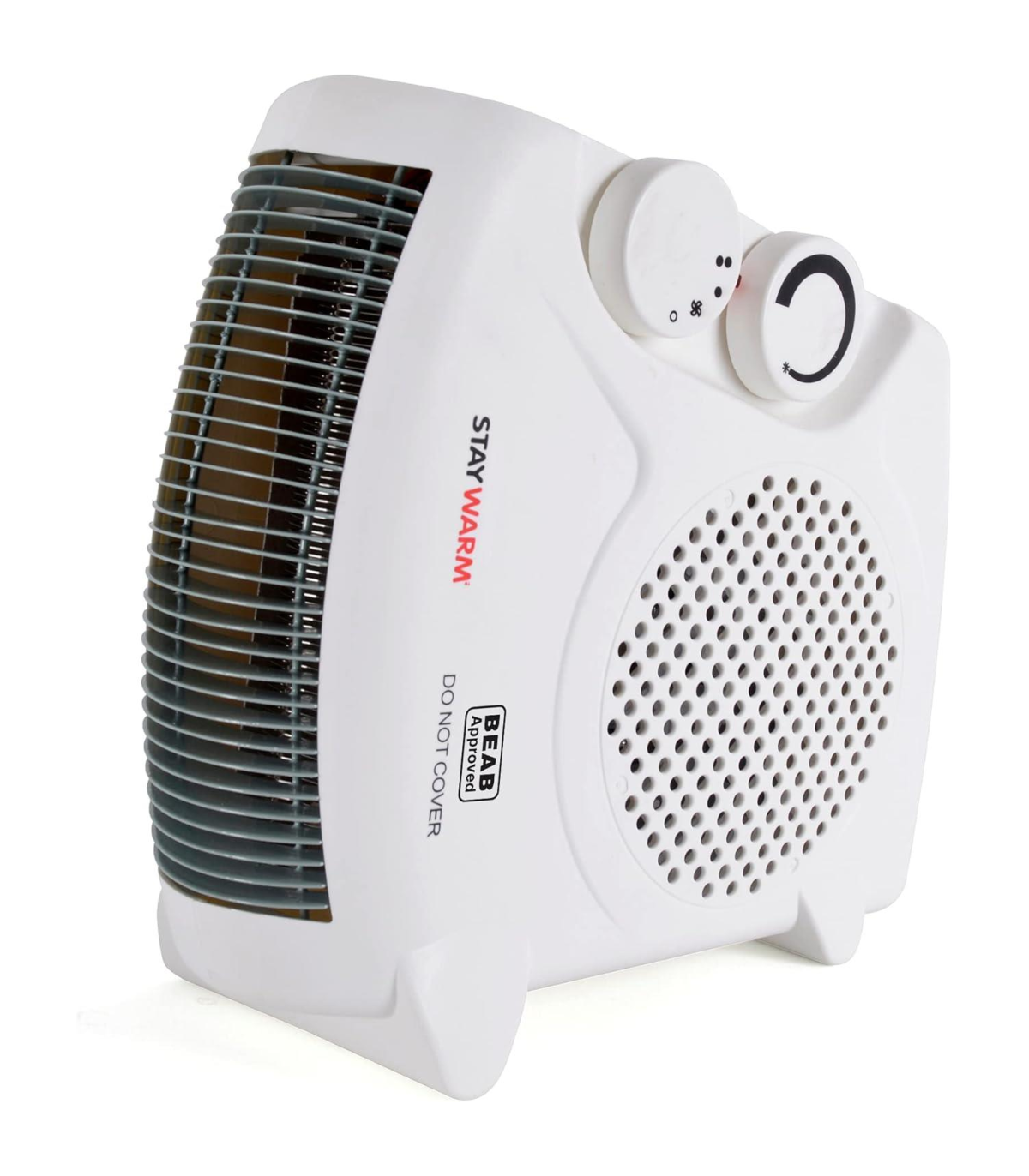 - COMPACT FLATBED AND UPRIGHT DESIGN: The 2000w Fan Heater sits horizontally or stands vertically, adapting to best suit your needs. The compact, simple and lightweight design is ideal for use at home or in the office and the integral carry handle makes it easy to transport. The red power light is illuminated during use to indicate that the heating element is active. Note: DO NOT USE EXTENSION LEADS