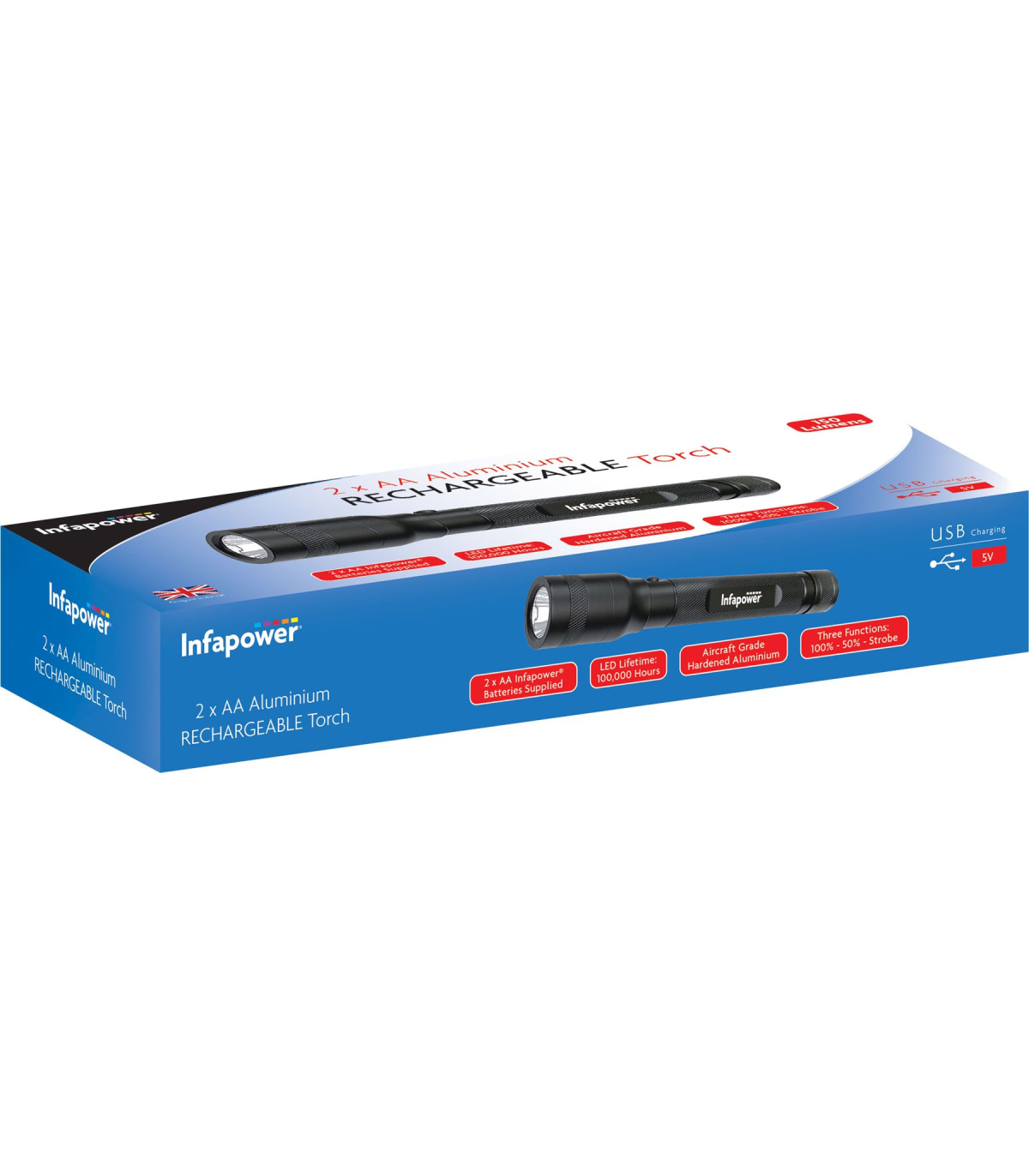 Infapower 2 x AA Aluminium Rechargeable Torch