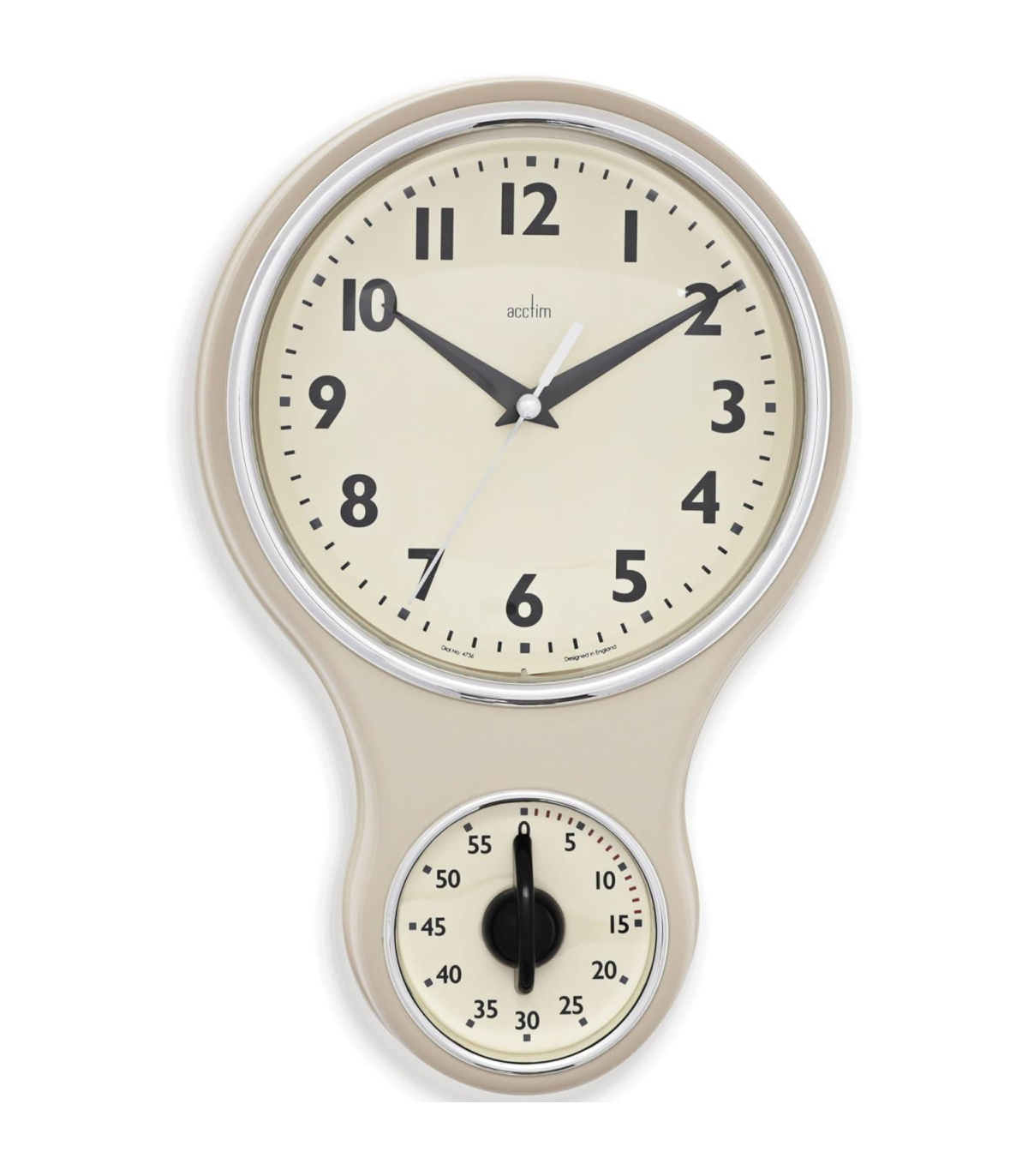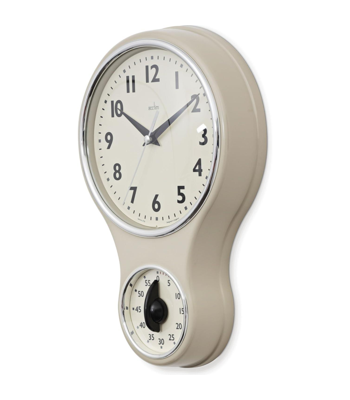 Acctim Kitchen Time 20cm Timer Quartz Retro Style Domed Glass Lens Cream Wall Clock 21592