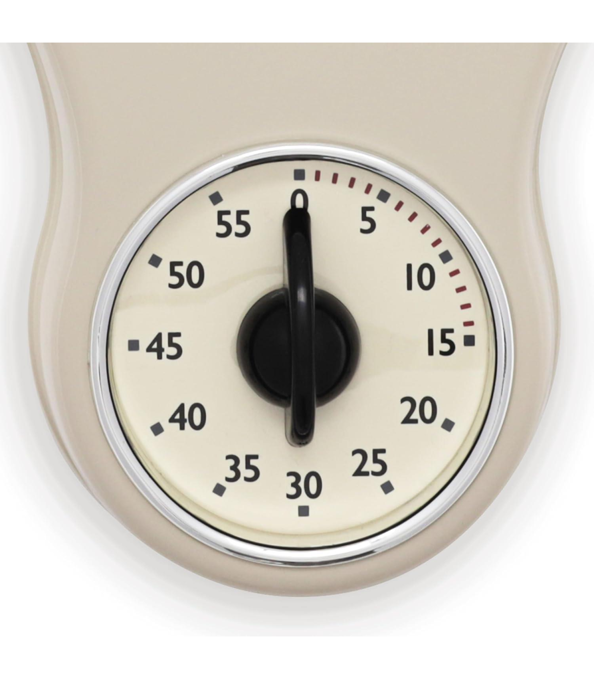 Enjoy a touch of vintage flair while keeping track of time, thanks to its eye-catching design and handy built-in mechanical timer. The domed glass lens adds a refined finish, making it a stylish and functional addition to any kitchen or dining area.