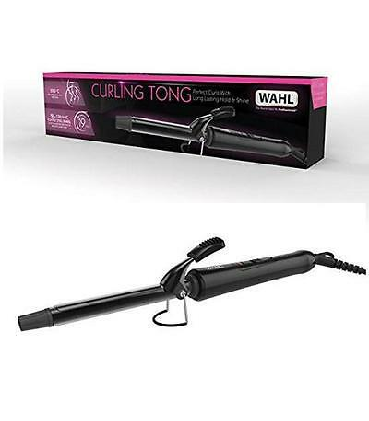 - Cool touch tip and barrel clamp that securely holds the hair in place whilst wrapping the length around the tong