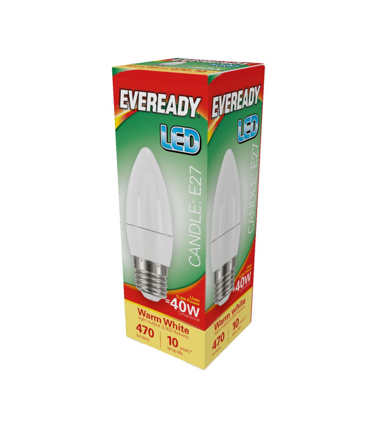Eveready S13614 LED Candle Bulb 40w E27 (ES) 470lm 4.9W Warm White (Pack of 5)