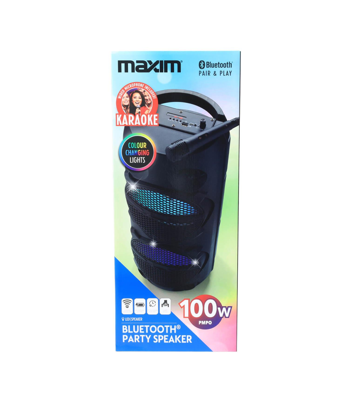 The Maxim Karaoke Speaker is the perfect party companion for music lovers and karaoke enthusiasts alike. With its built-in Bluetooth technology, you can effortlessly connect your smartphone or tablet to stream your favourite songs wirelessly.