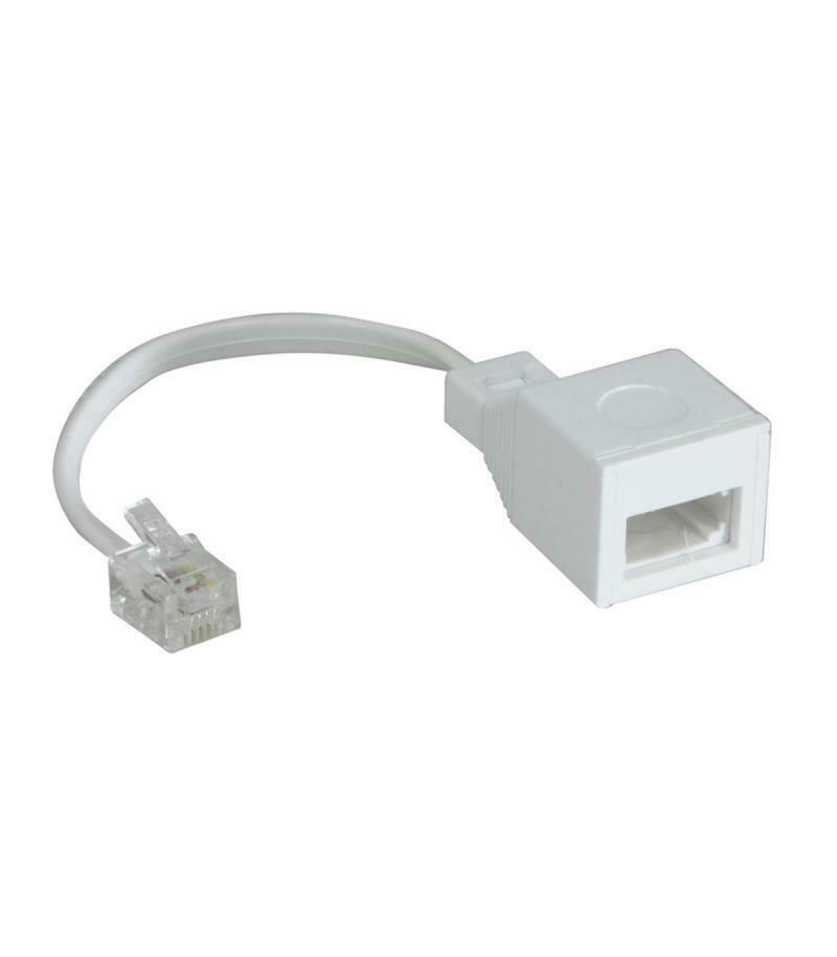 US/UK adaptor to convert BT plug to RJ11 US/UK Adaptor to Convert a UK BT Plug into a US RJ11 Plug. Product Dimensions (mm): 150x20x20 Net weight (kg): 0.005 Colour: White Lead Length (m): 0.08