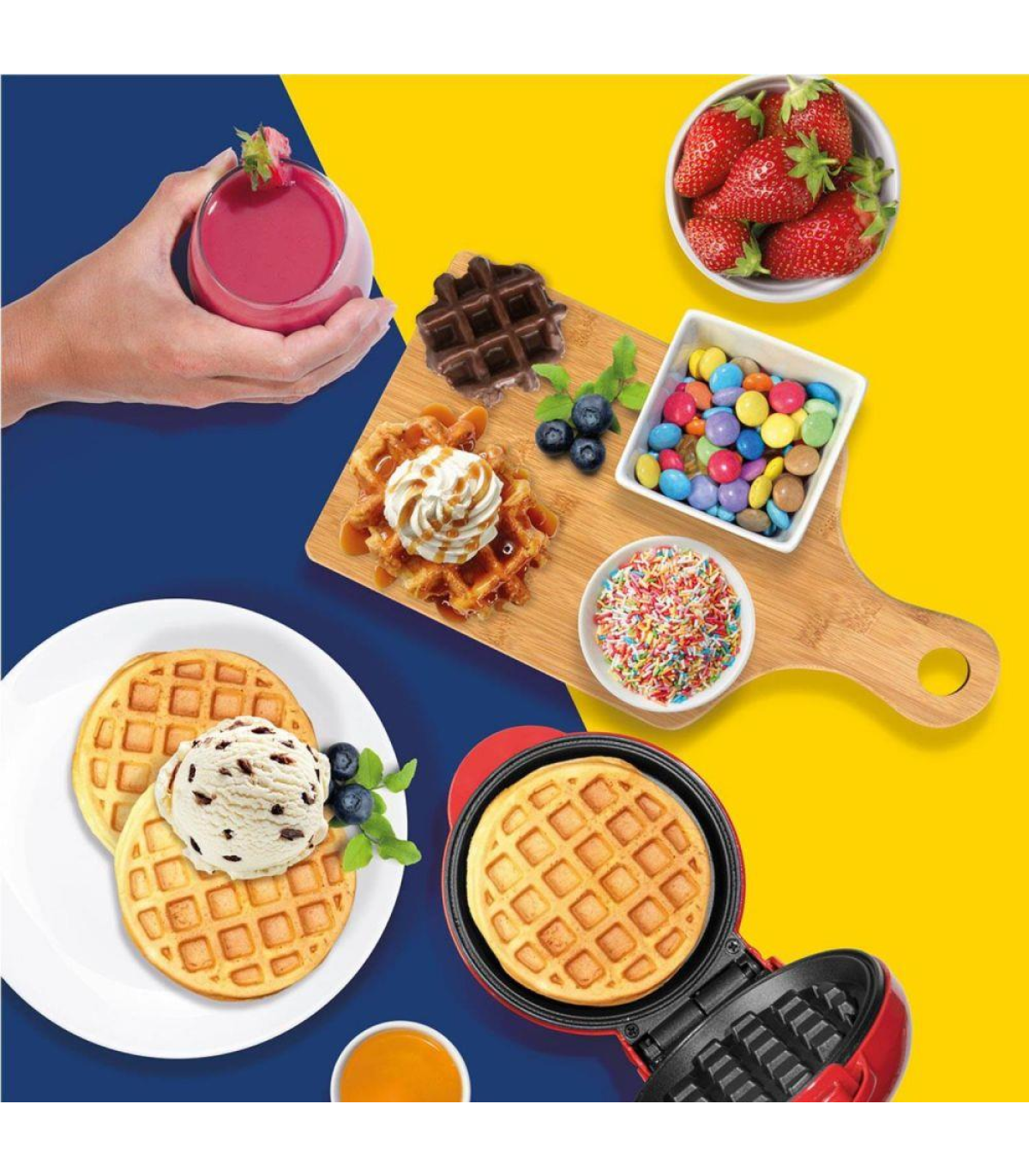 Giles & Posner EK4214G 550W Non-Stick Mini Waffle Maker - Red