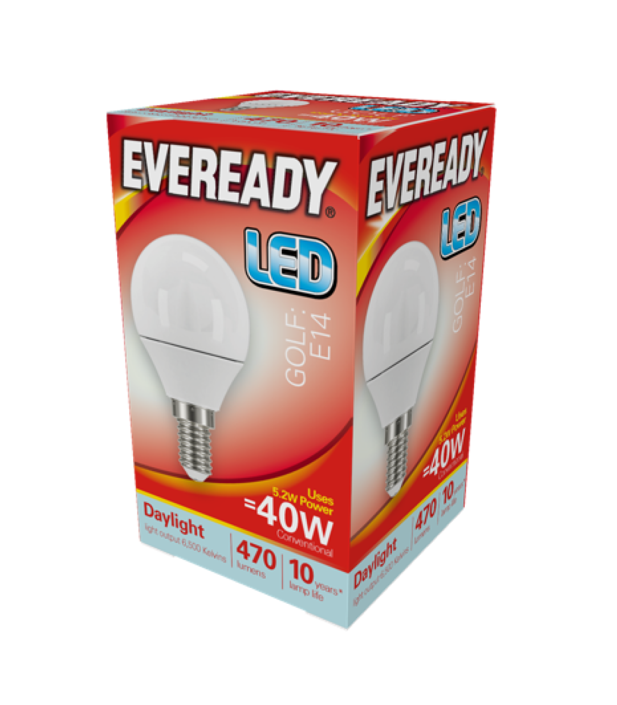 Eveready S13609 LED Golf Bulb 40w E14 (SES) 470lm 4.9W Daylight (Pack of 5) 4.9W / 40W Replacement 470 Lumen 6,500K (Daylight) Non-Dimmable 220-240V Energy Rating F